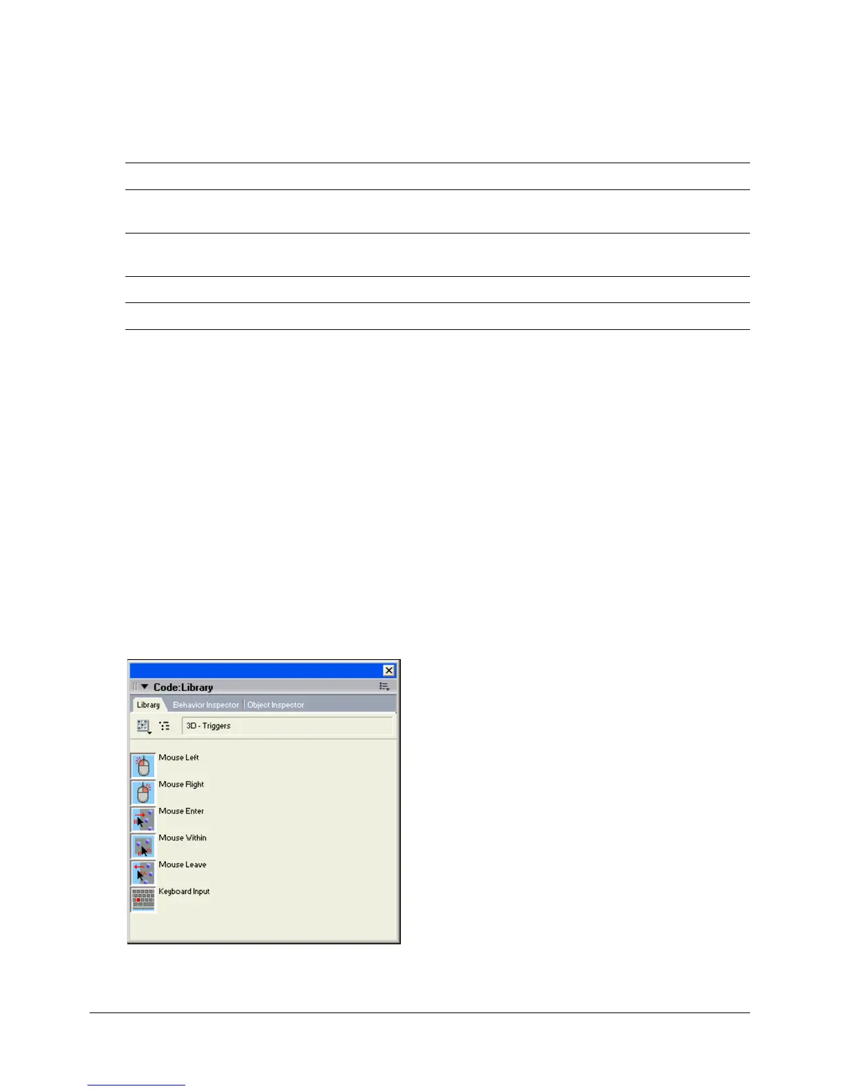 All 3D behaviors are listed in the Behavior Library. The Behavior Library is divided into two