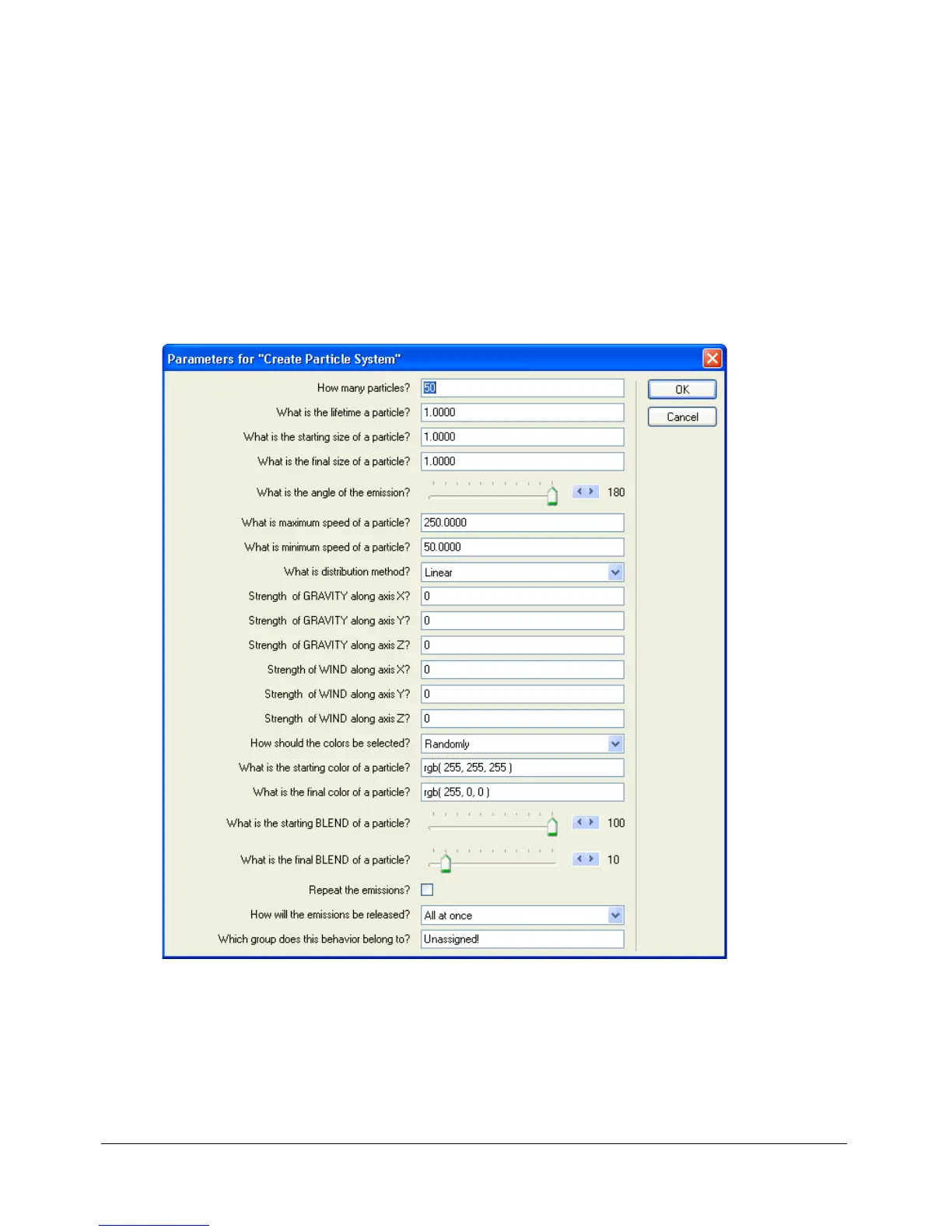 The Parameters dialog box appears. You can use this dialog box to control the behavior.