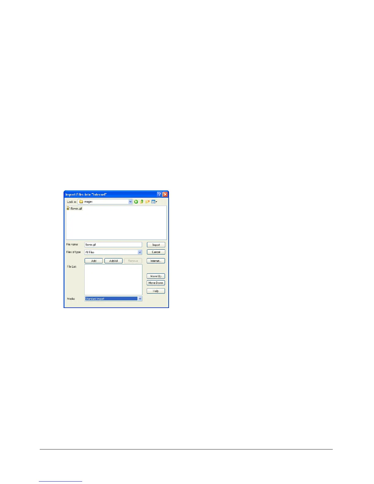 You can import files by using the Import dialog box, dragging files from the desktop to a Cast