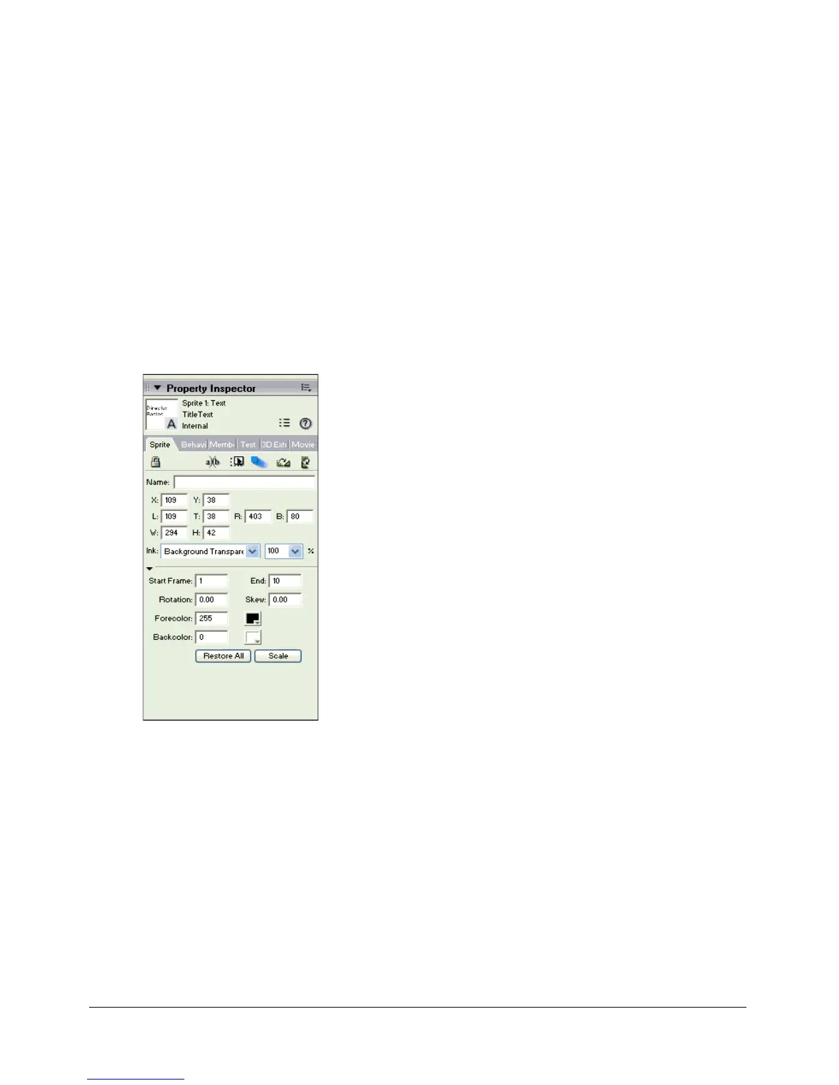 2 Select Window > Property Inspector, and select the Sprite tab.