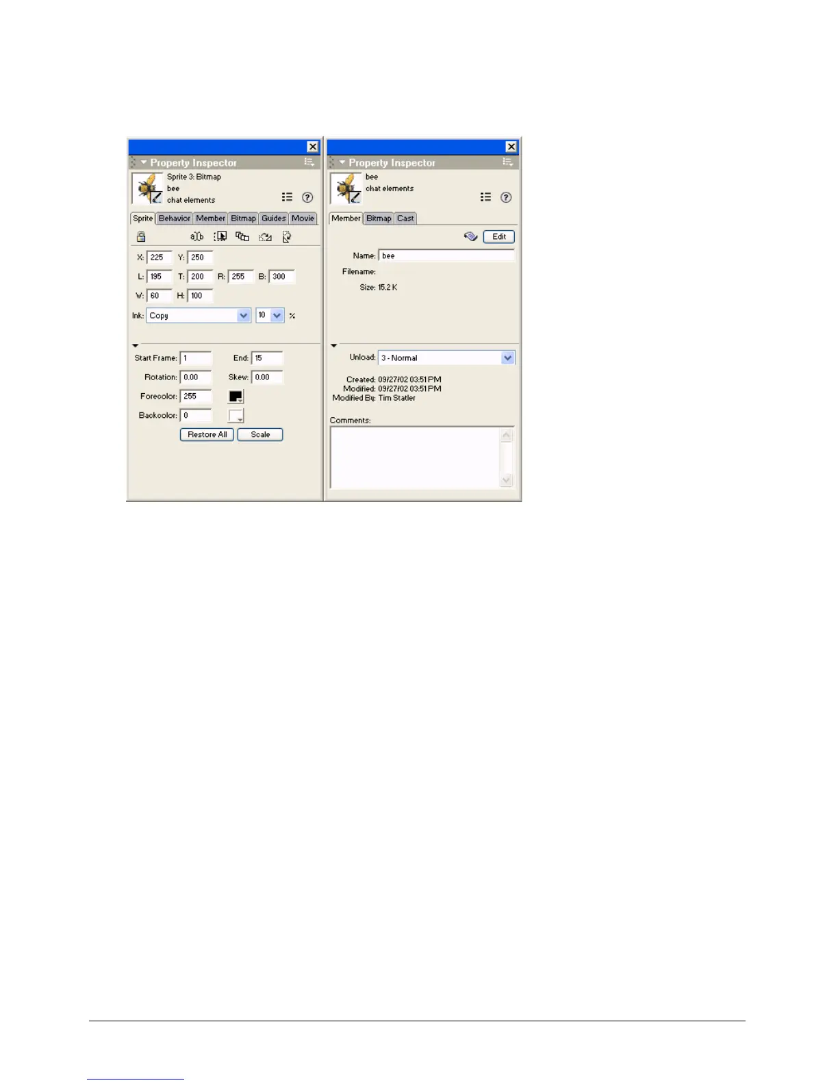 depending on what is selected. In the first illustration, a sprite is selected. In the second