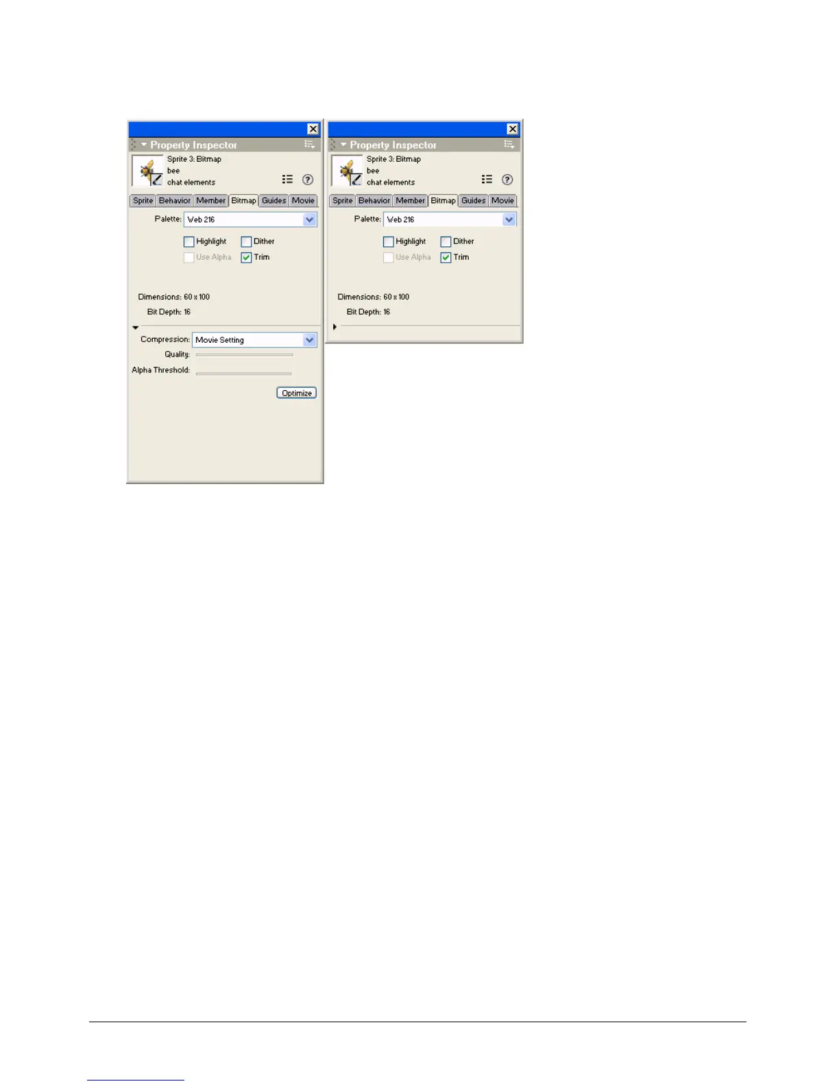The following illustrations show different information appearing in the Property inspector