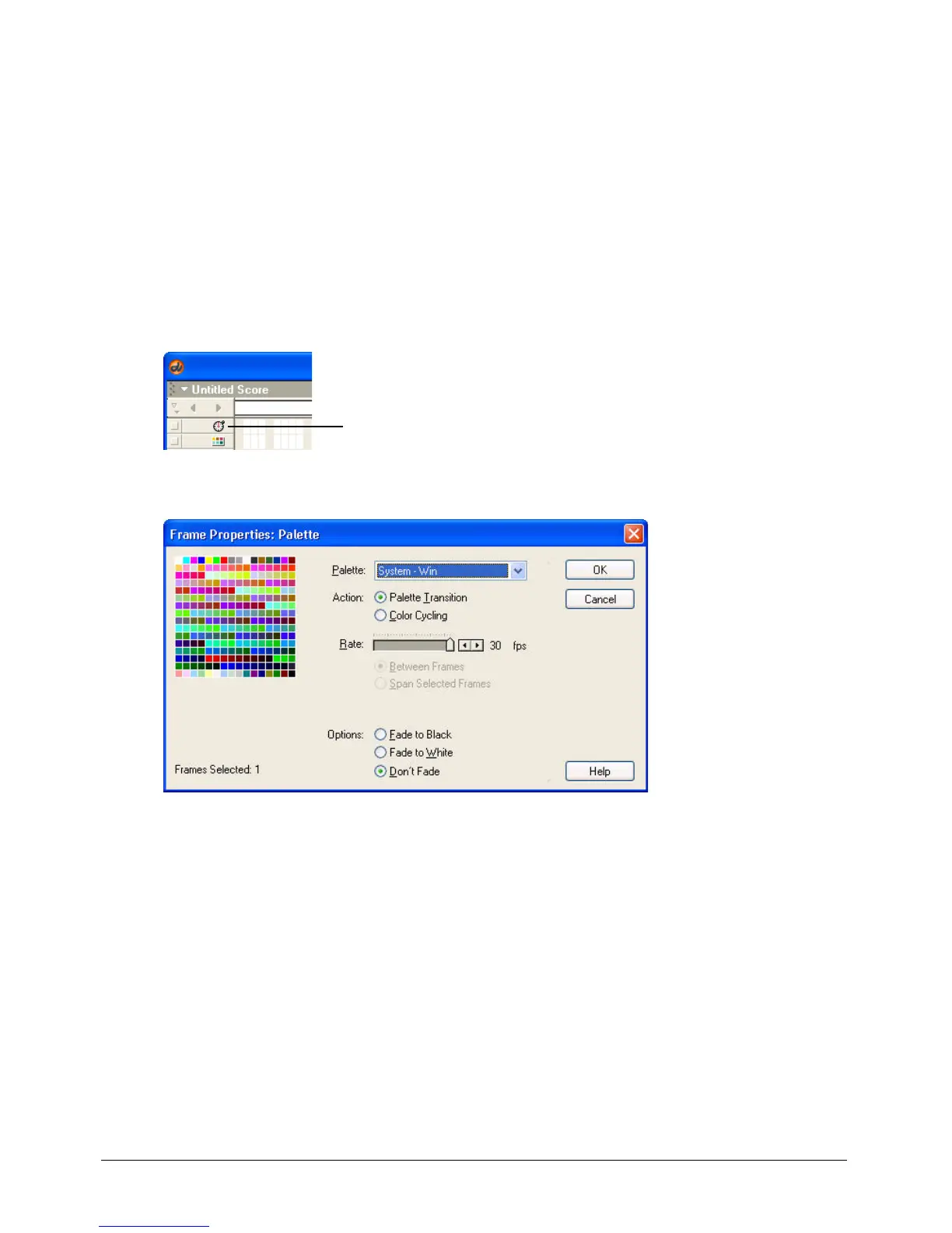 menu. Select the Palette Transition option, and then select Between Frames. Use the Rate slider