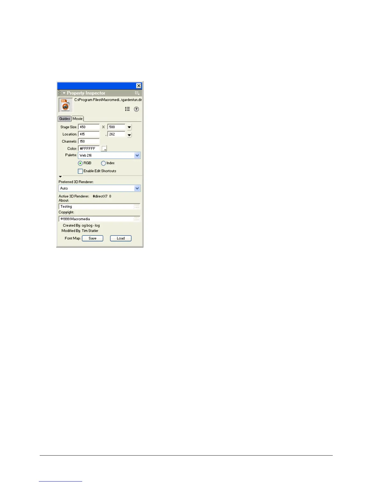 You use the Property inspector’s Movie tab to specify settings that affect the entire movie, such as