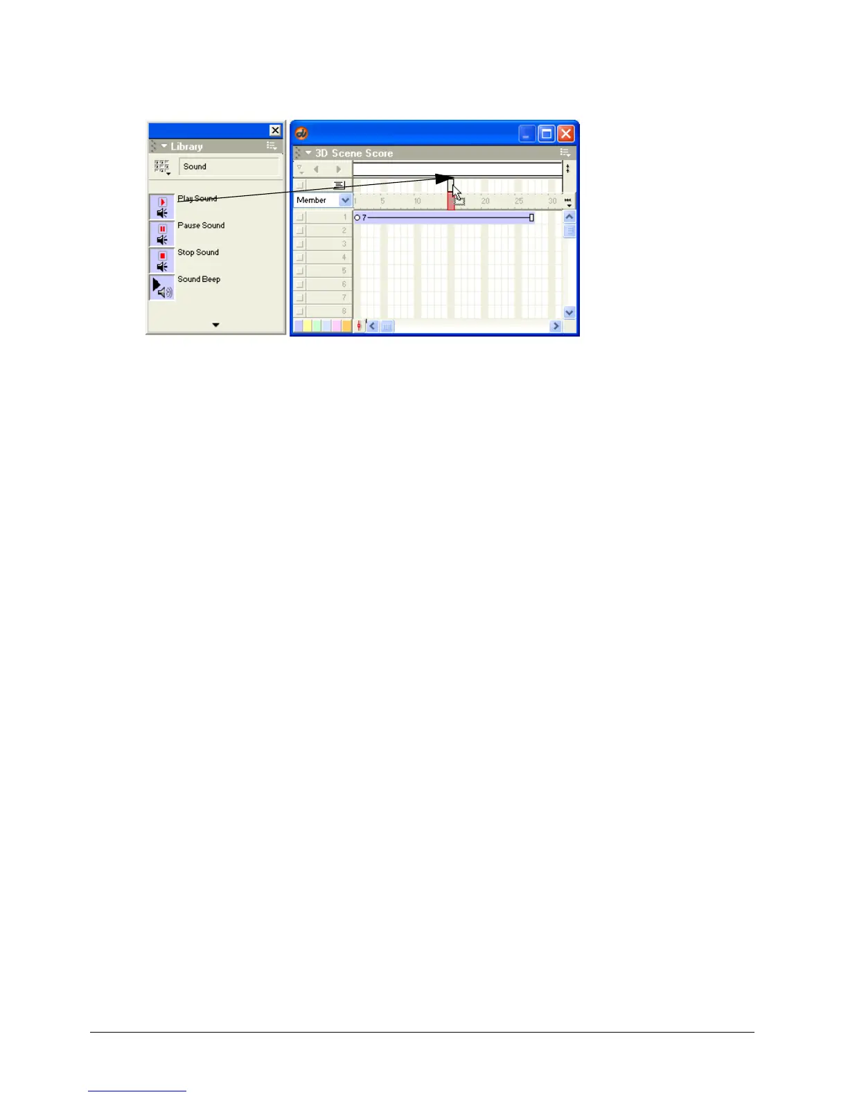 5 To attach a behavior to a frame in the behavior channel, drag a behavior from the Library