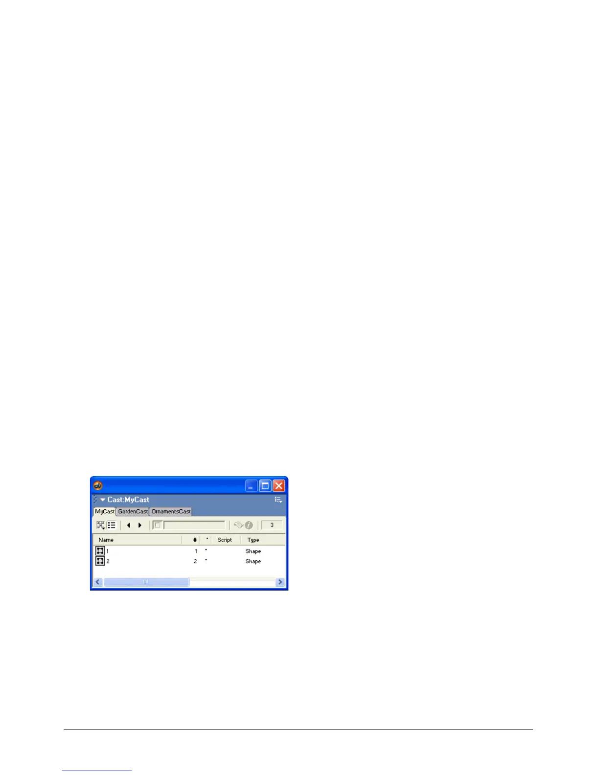 For more information about Cast panel management, see Chapter 4, “Cast Members and Cast