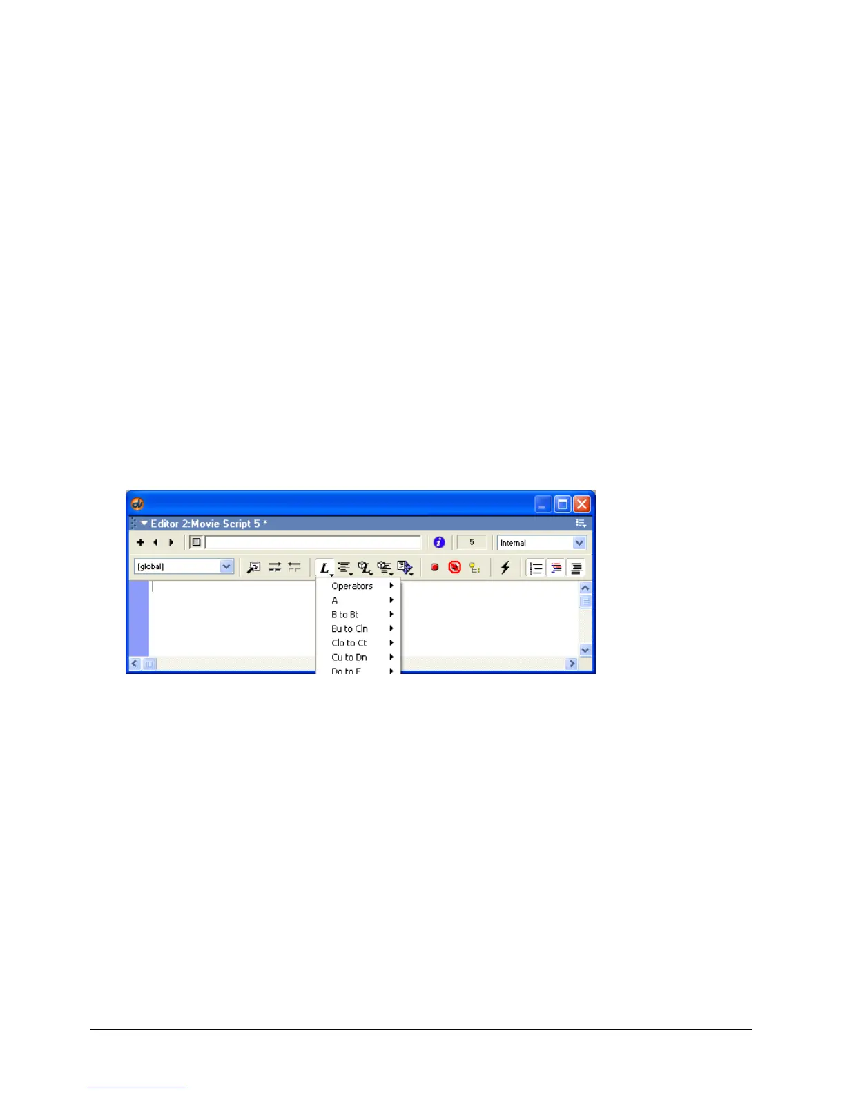 • The Scripting Xtras menu contains Lingo terms that are provided by any third-party Xtra