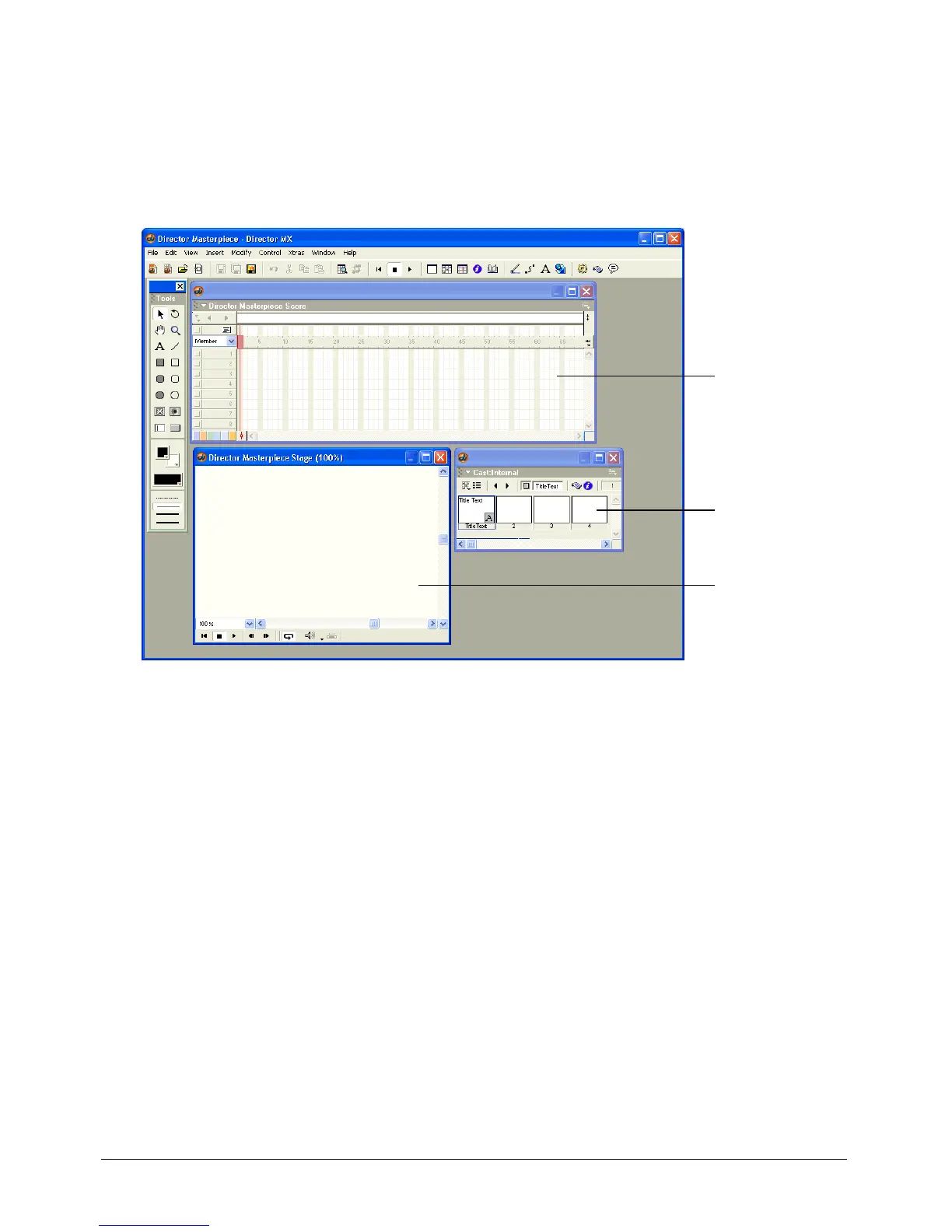 The action in a Director movie takes place in a window called the Stage. To create a Director