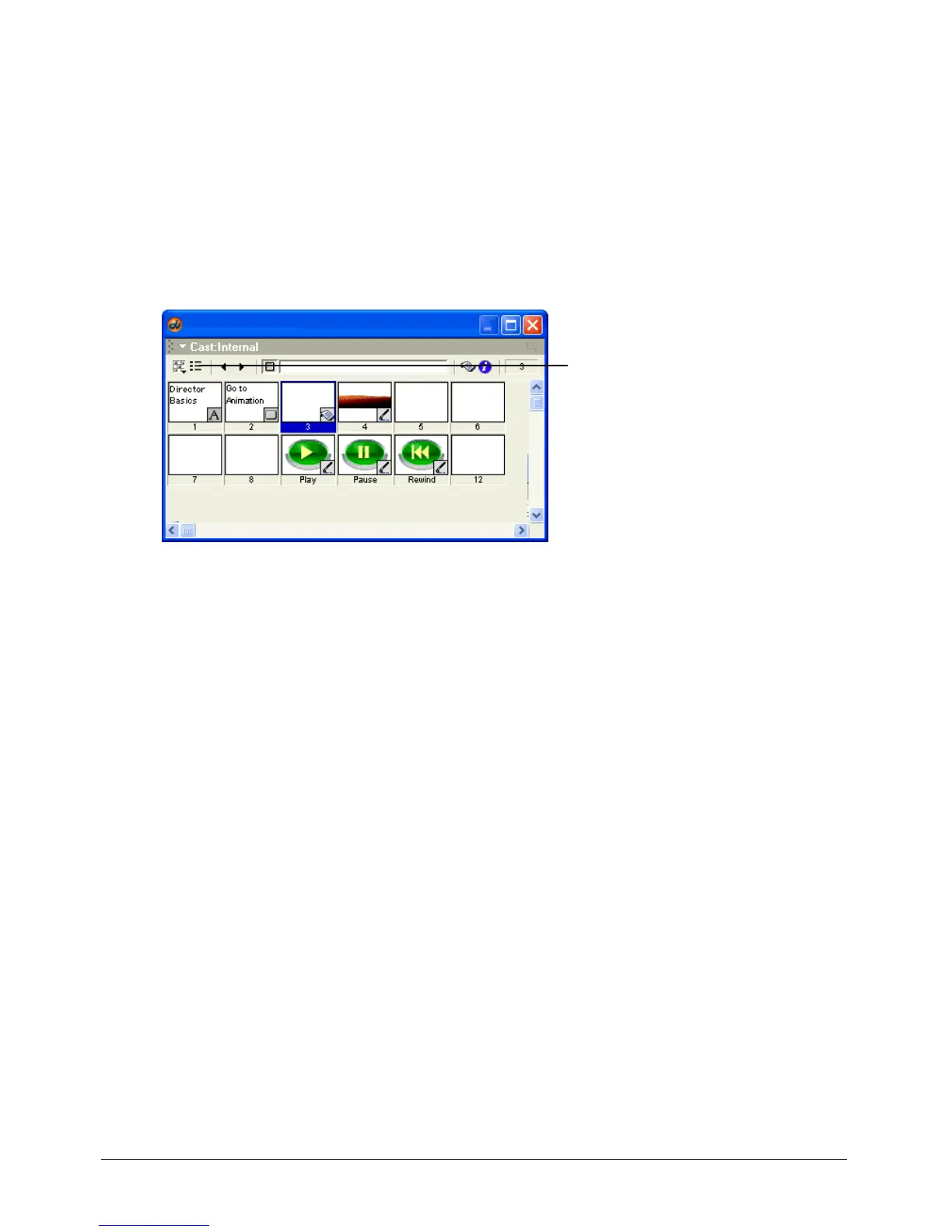 The Cast window contains cast members that you can use in your movie. The first is a text cast
