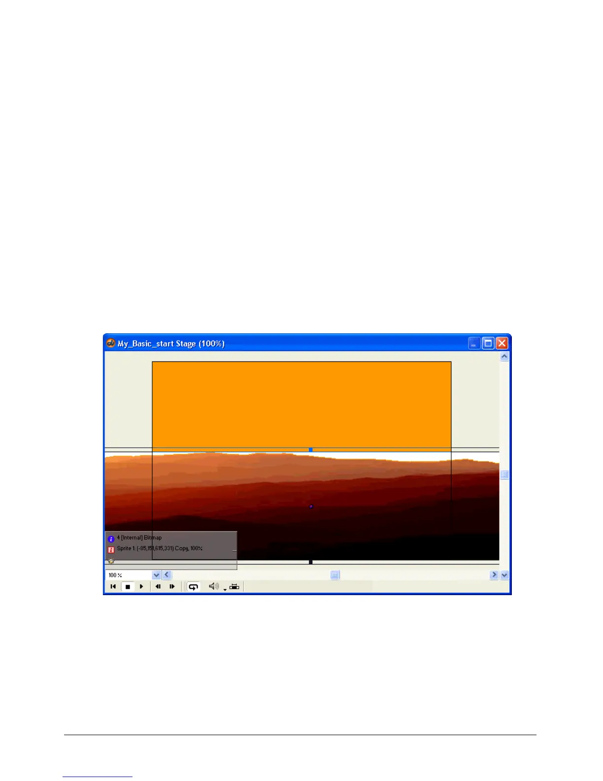 window. Place the sprite so it fills the Stage from left to right and is aligned with the bottom of