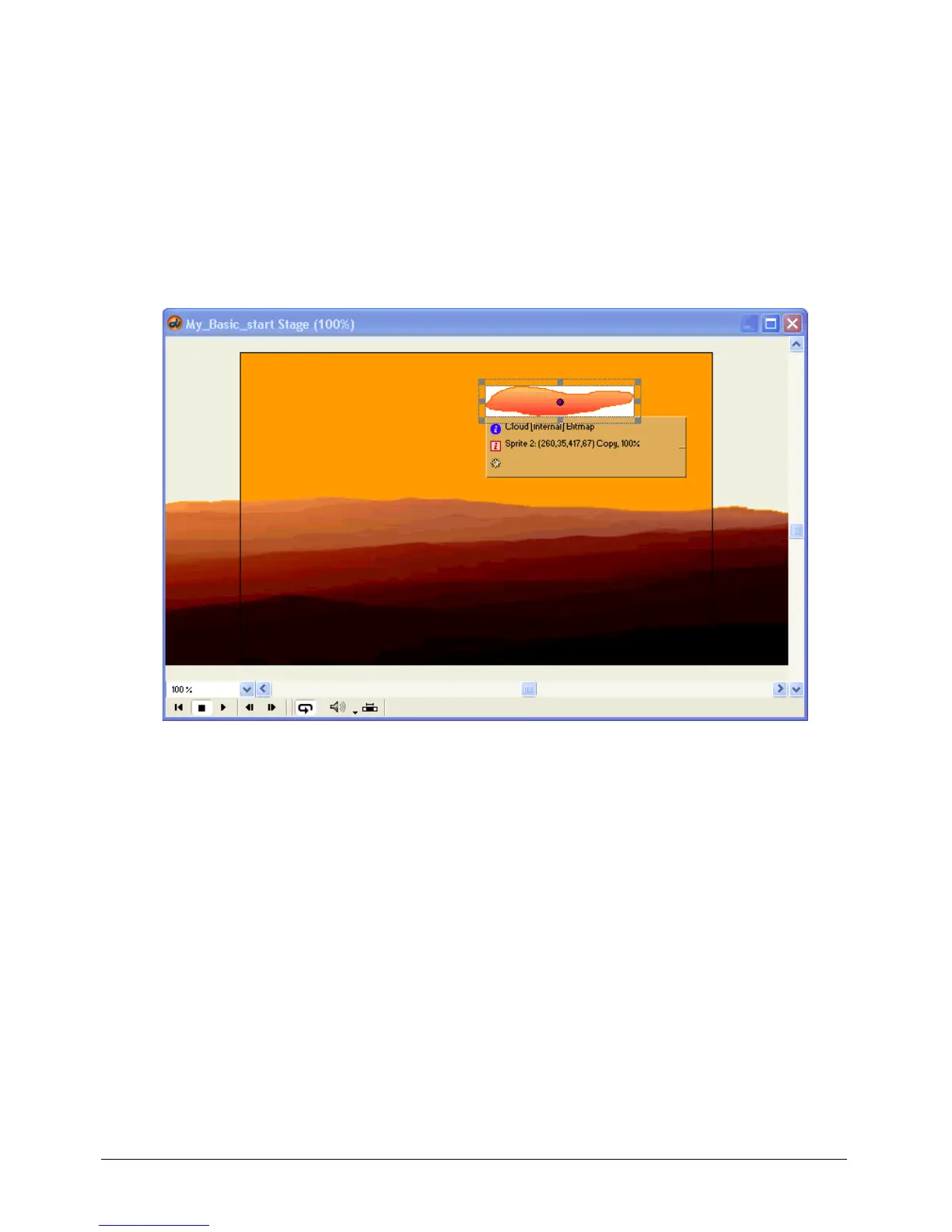 sky. You can do this by placing a sprite of the Cloud cast member on the Stage, and then using a