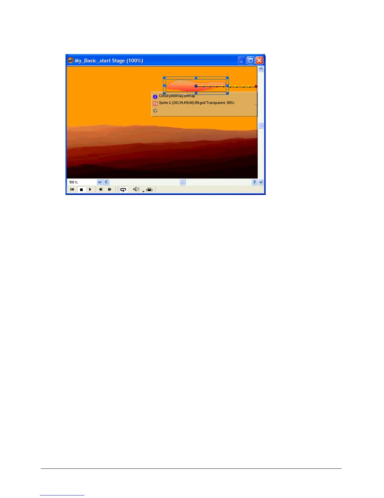 animation path of the Cloud. By dragging the dots, you are specifying the sprite’s location on the