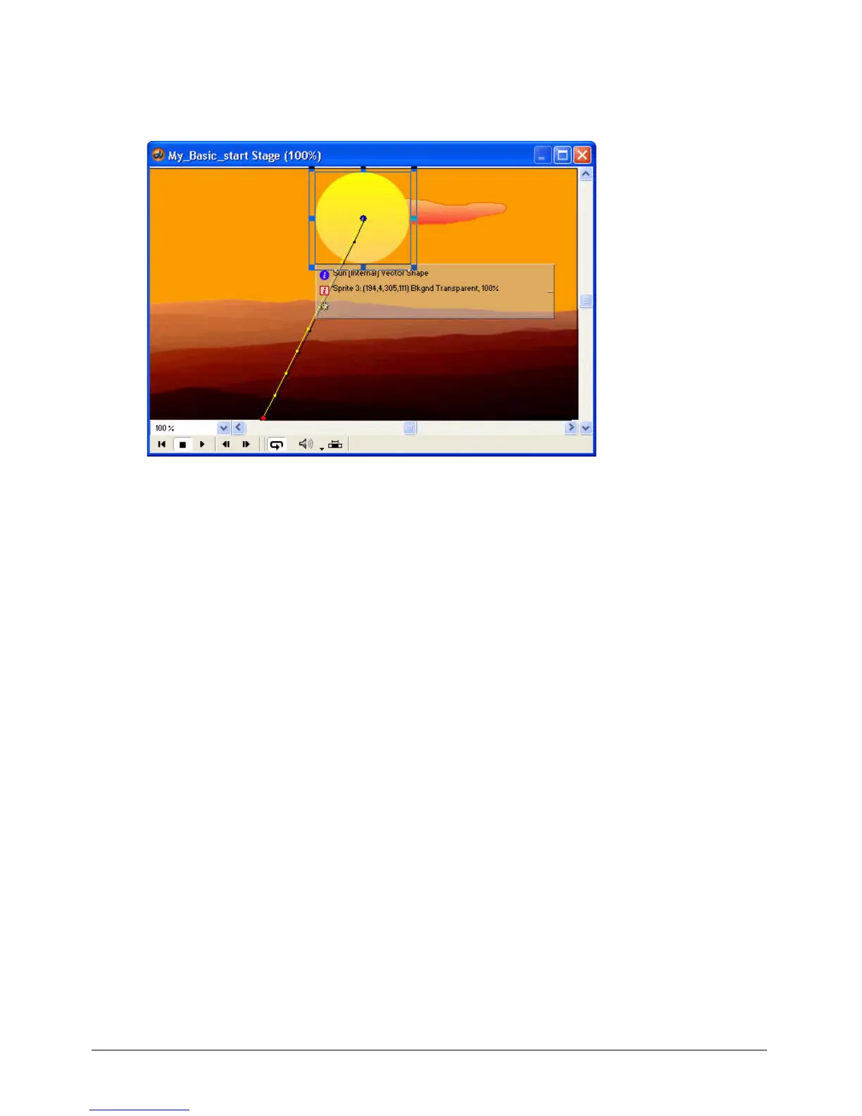 the bottom of the Stage. A line appears, connecting the dots. This line is the sun’s tweened
