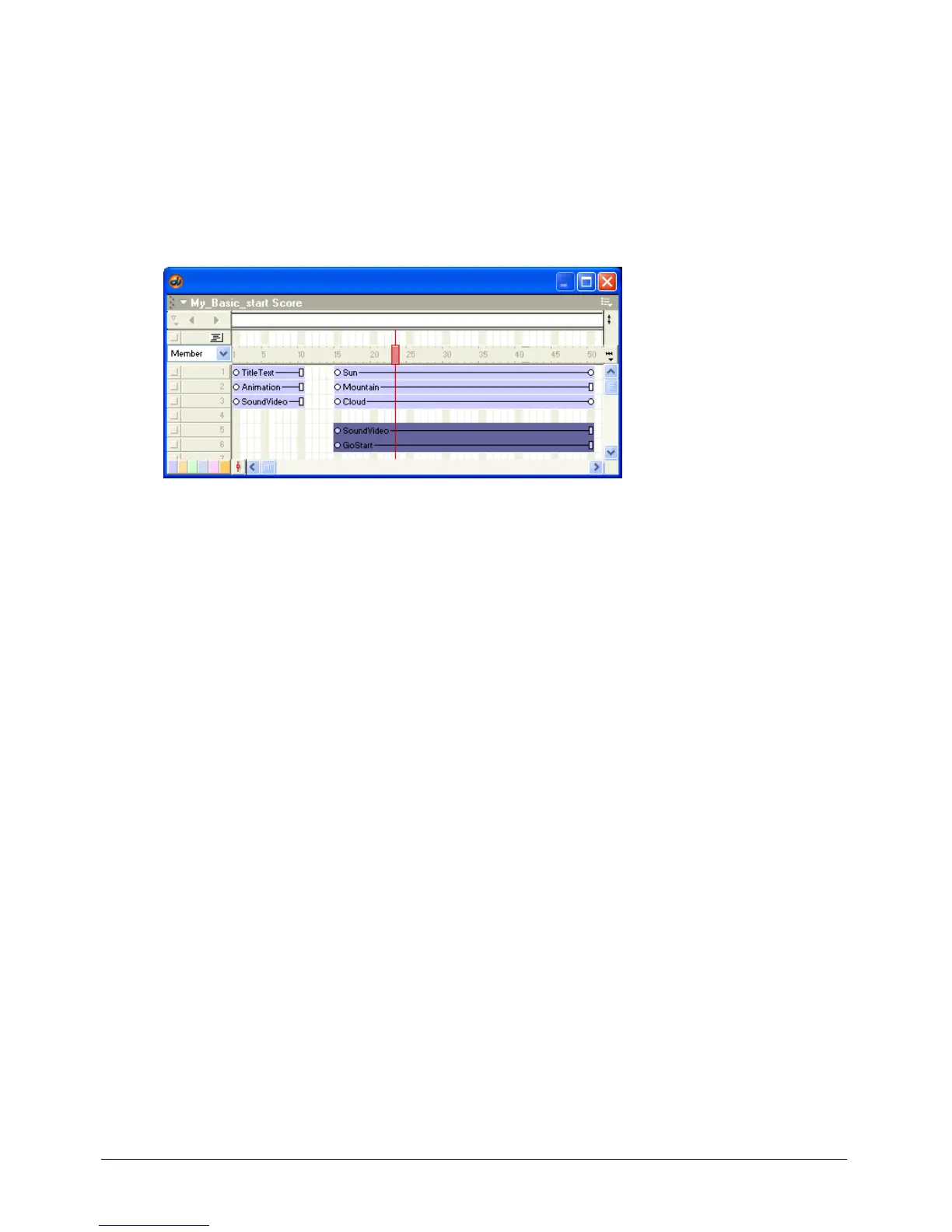1 Select both the SoundVideo and GoStart sprites, which begin in frame 15, in the Score by