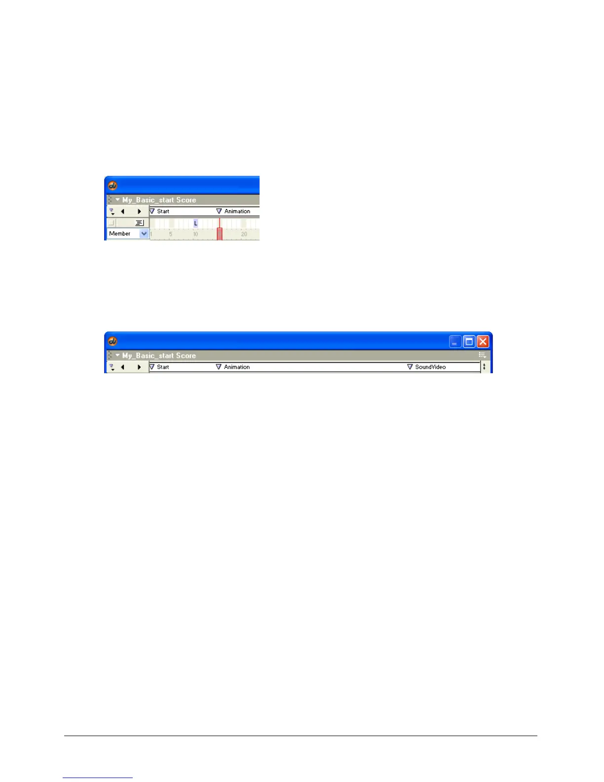 1 In the Score, click the marker bar in frame 1, the first frame of the start scene.