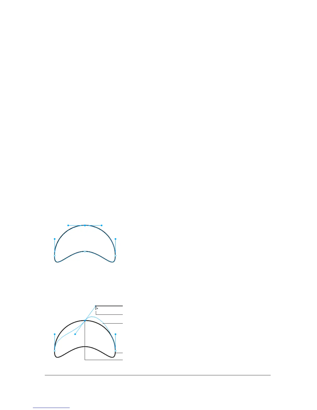 Subselection tool. The point handles determine the degree of curvature between fixed points.
