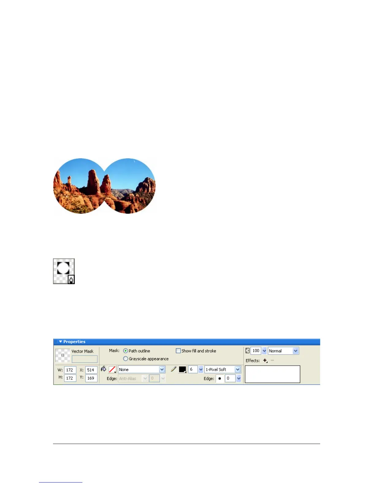 Vector mask properties in the Property inspector