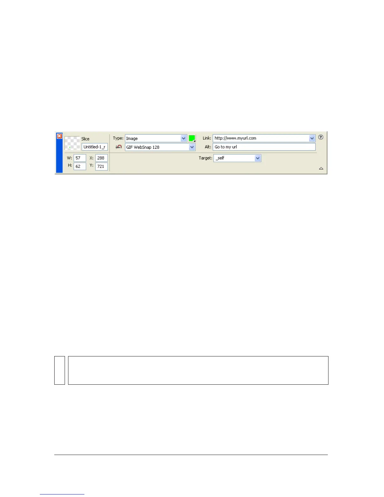 Using the Property inspector, you can make slices interactive by assigning links and targets to