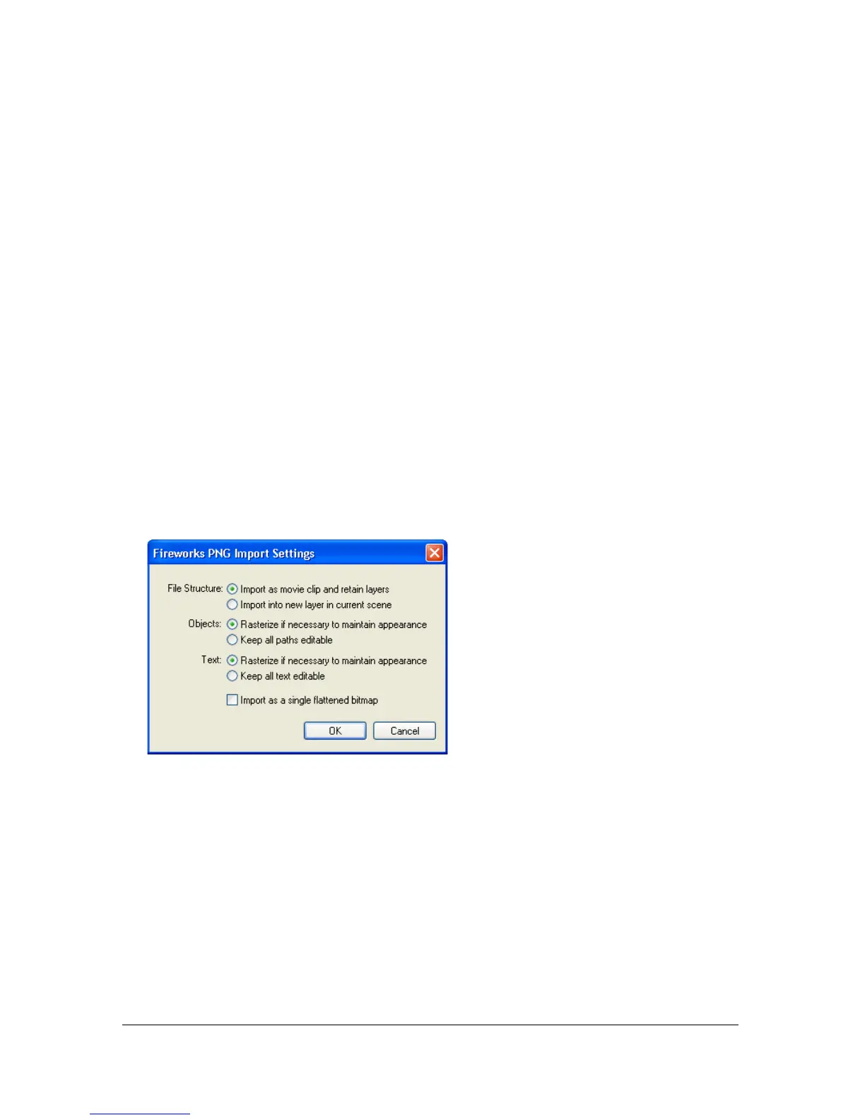 and choose to import the Fireworks PNG file as a single, flattened bitmap image.