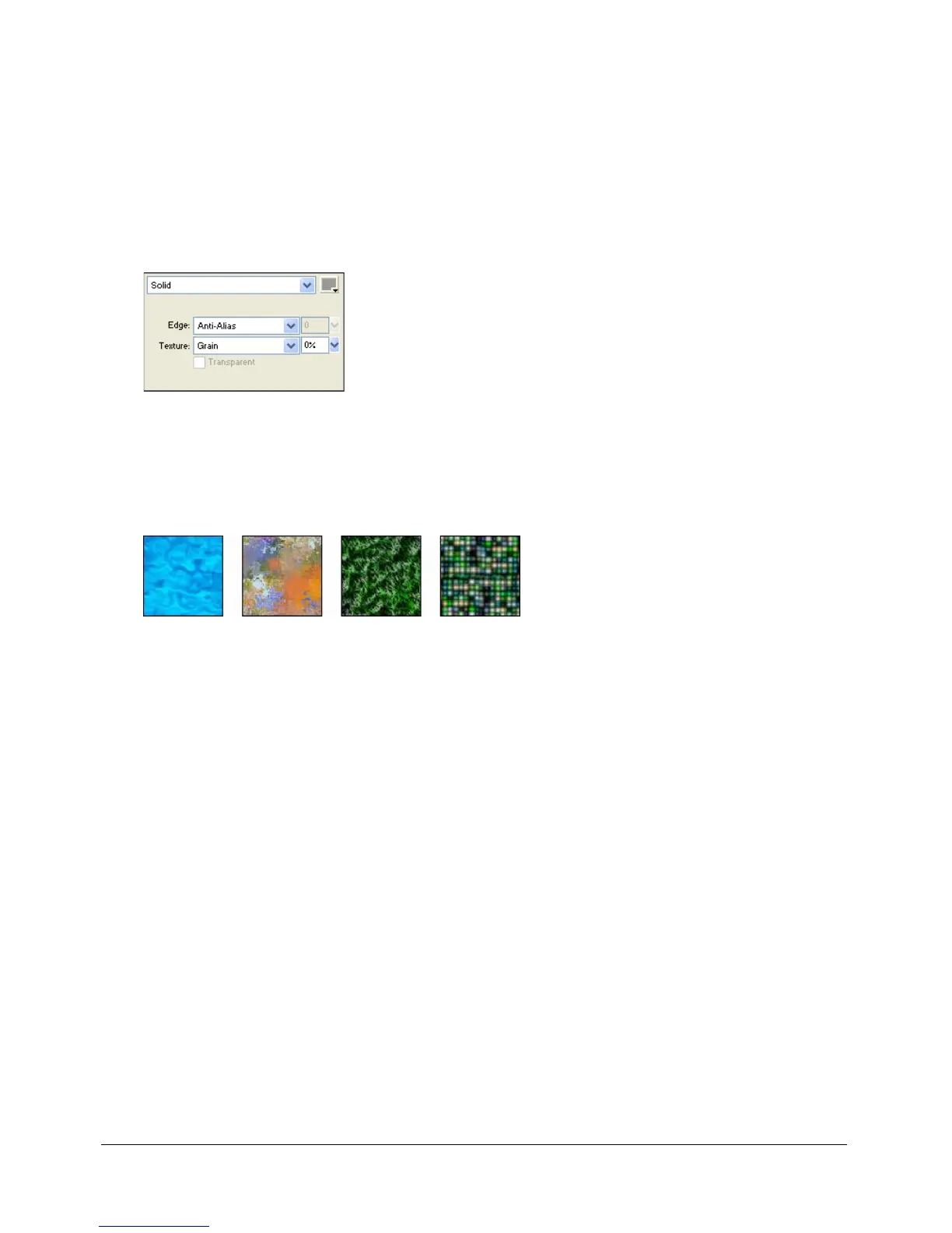 can change various attributes of a fill, such as color, edge, texture, and transparency.