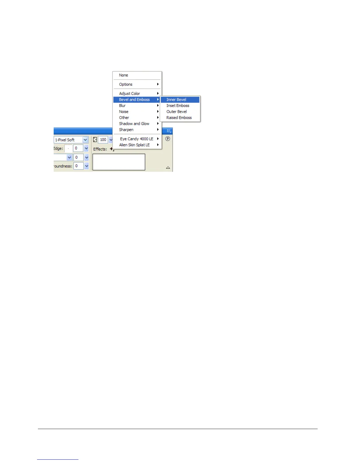 Effects pop-up menu in the Property inspector