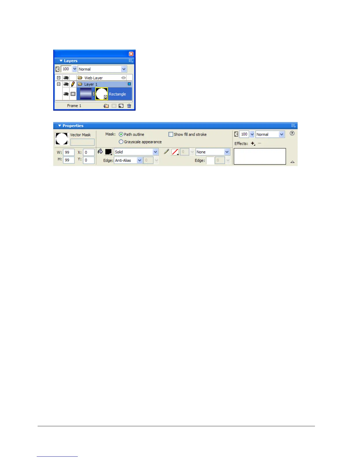 mask’s properties show in the Property inspector, where they can be changed if desired.