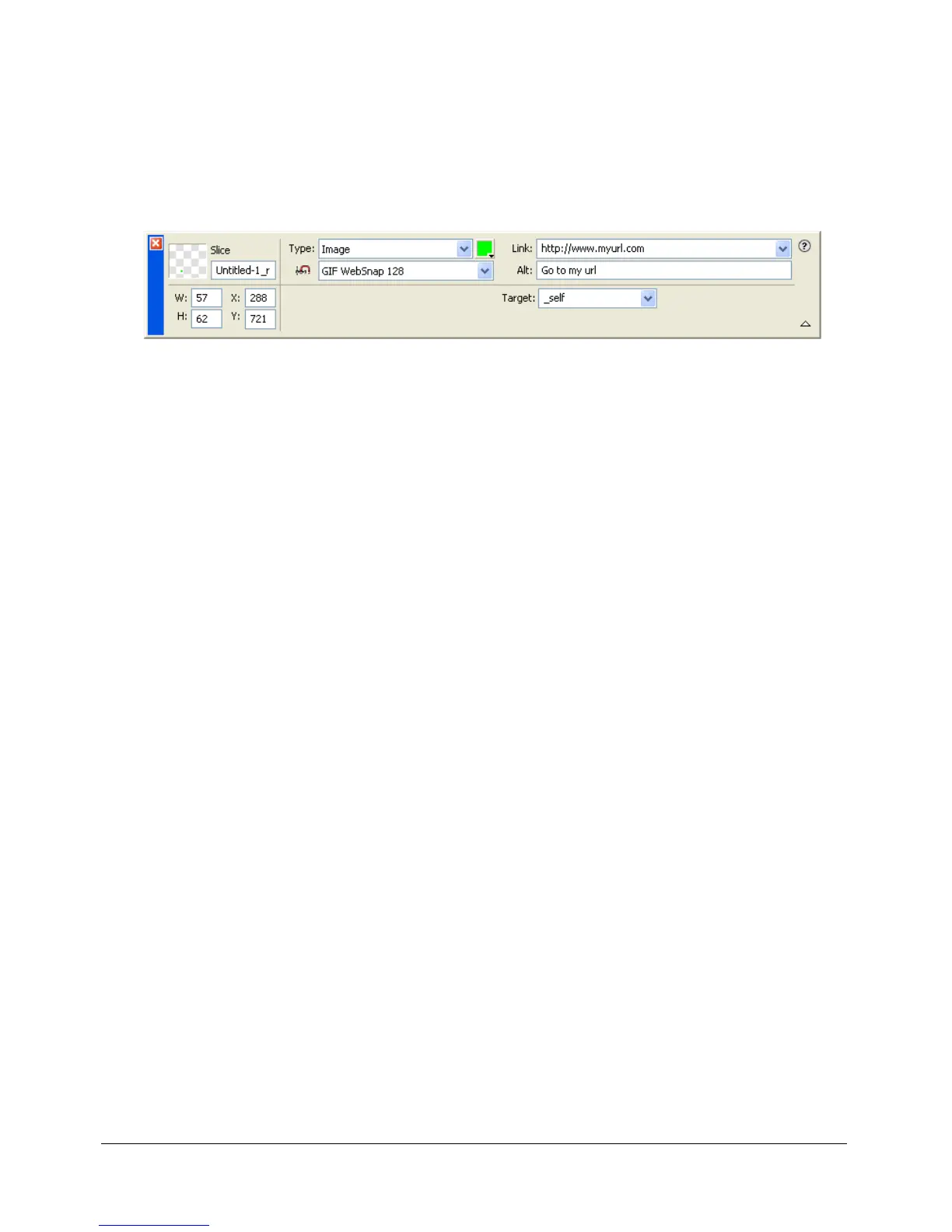 Using the Property inspector, you can make slices interactive by assigning links and targets to the