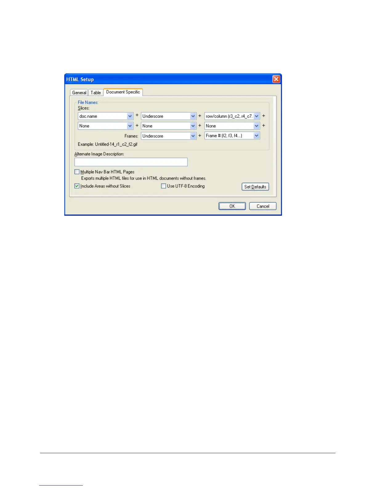 1 Choose File > HTML Setup to open the HTML Setup dialog box.