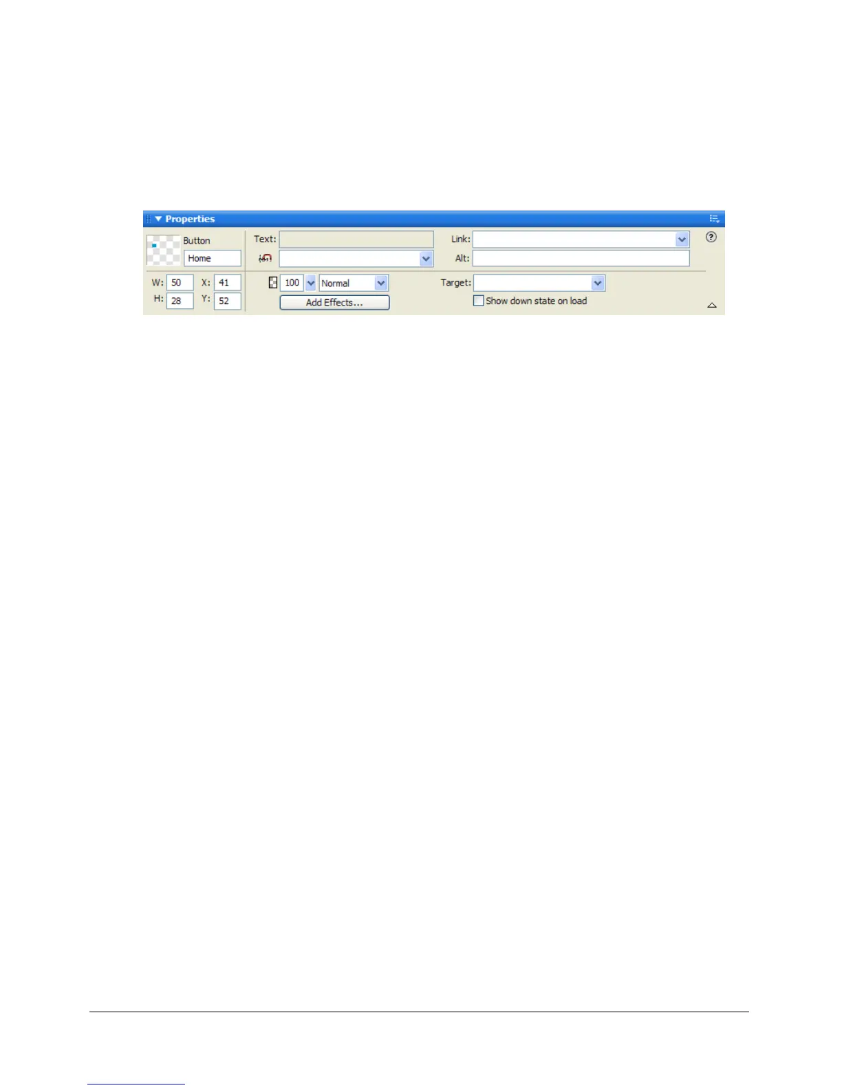 Note: In Fireworks MX 2004, you need not choose the Show Down State on Load option for