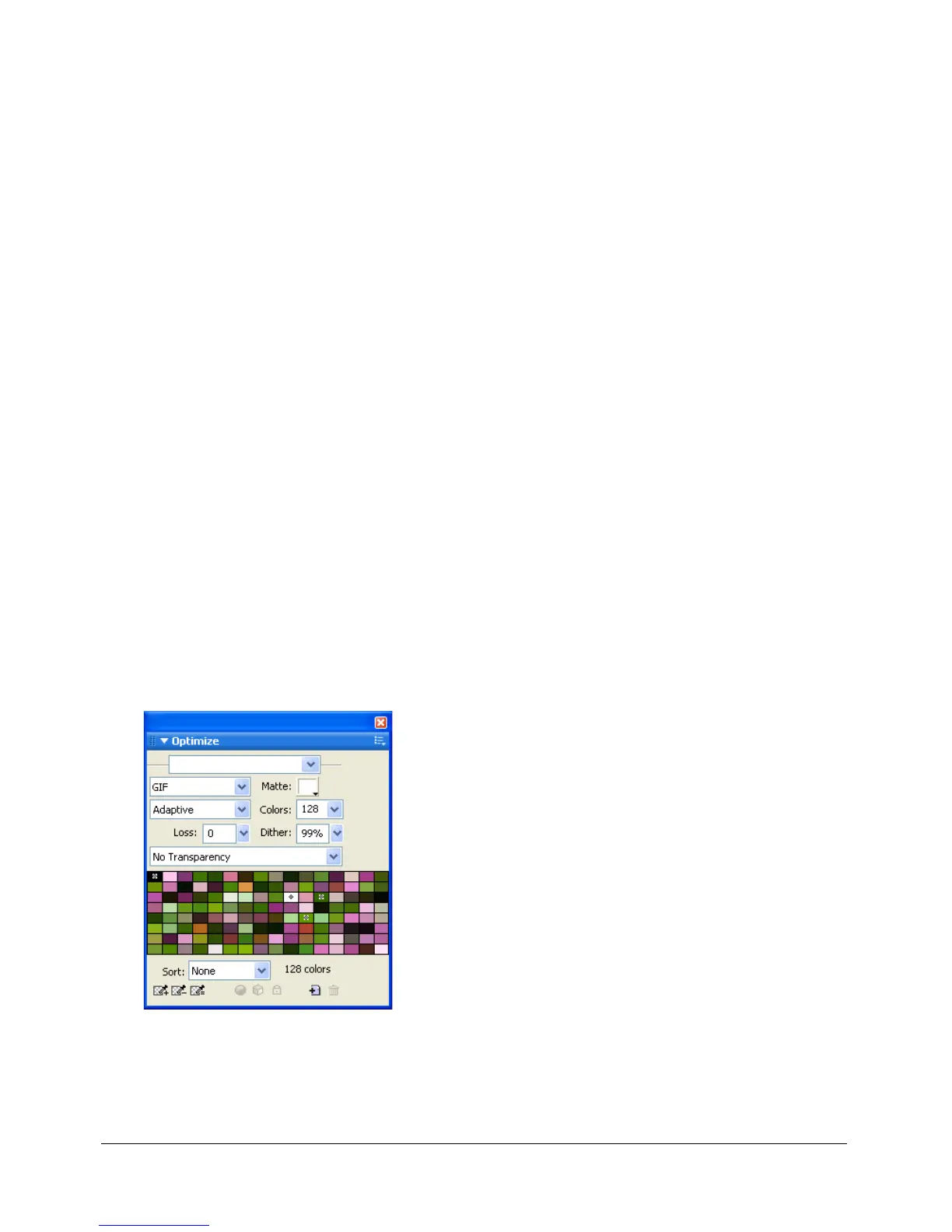 • Choose Remove Unused Colors from the Optimize panel Options menu.