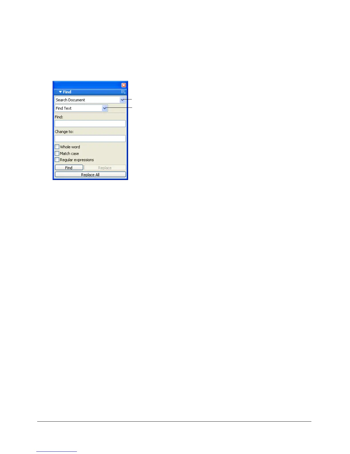fonts, and colors. Find and Replace can search the current document or multiple files.