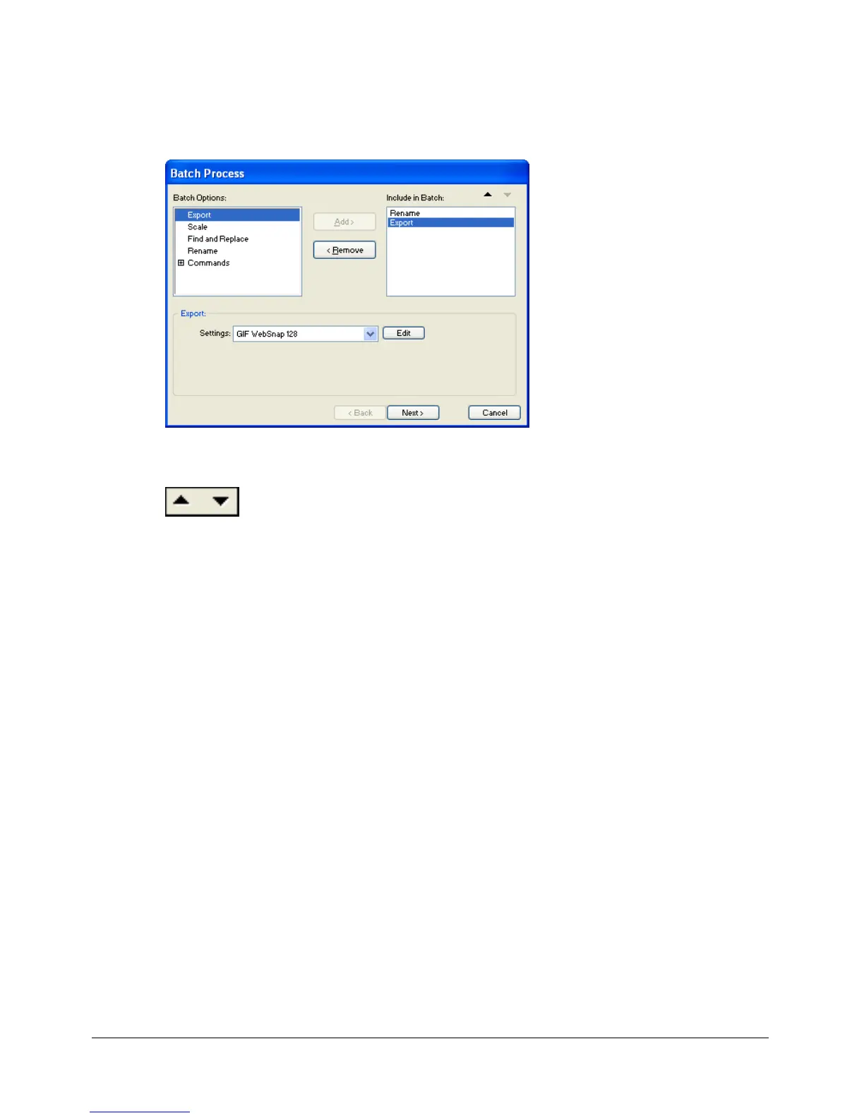 ■ To reorder the list, select the task in the Include in Batch list and click the up and down