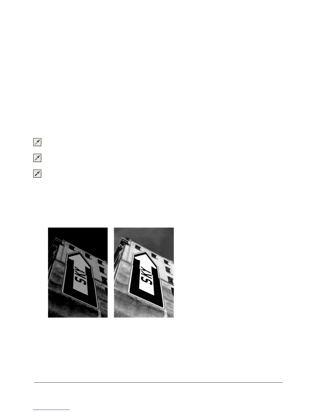 2 Choose the appropriate eyedropper to reset the tonal values in the image: