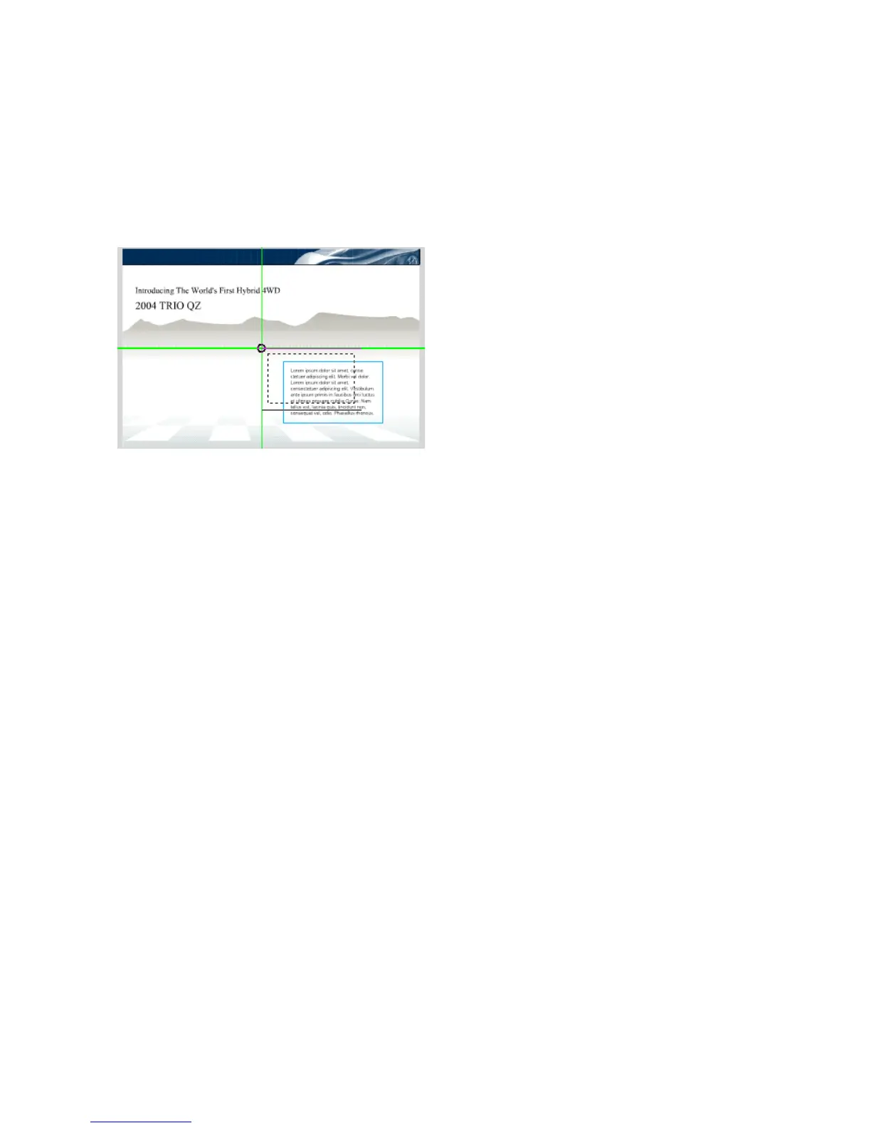 6. On the Stage, click inside the upper-left corner of the blue text border