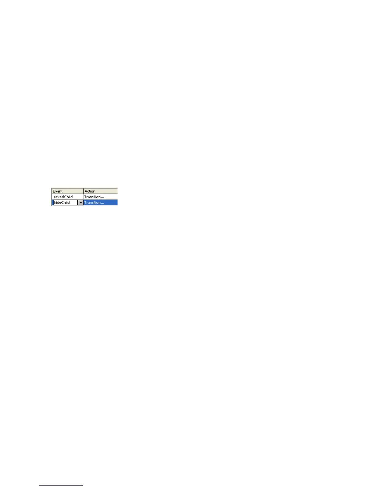 In the Behaviors panel, revealChild now appears twice. With the Fly