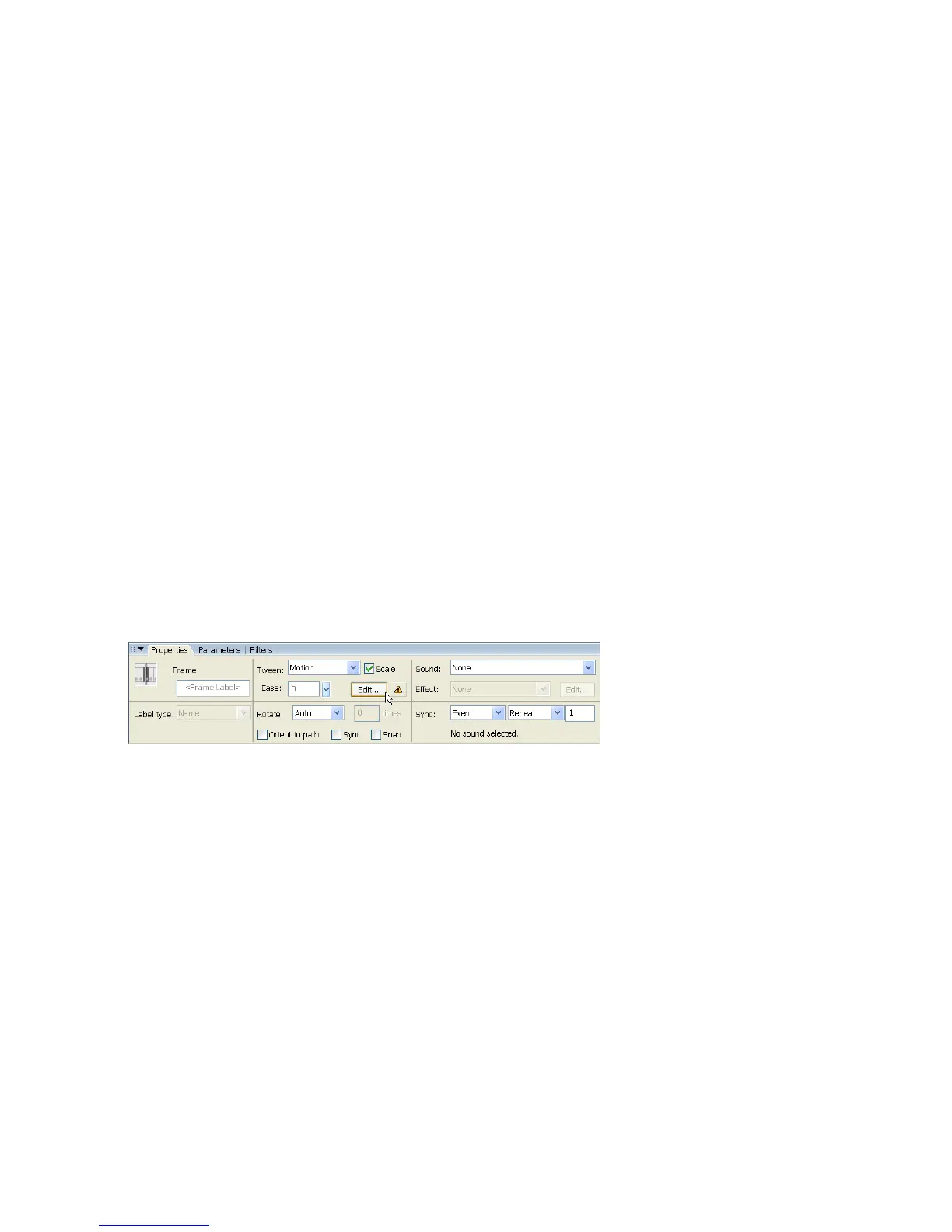5. In the Property inspector, drag the Ease slider down until the value is 0.