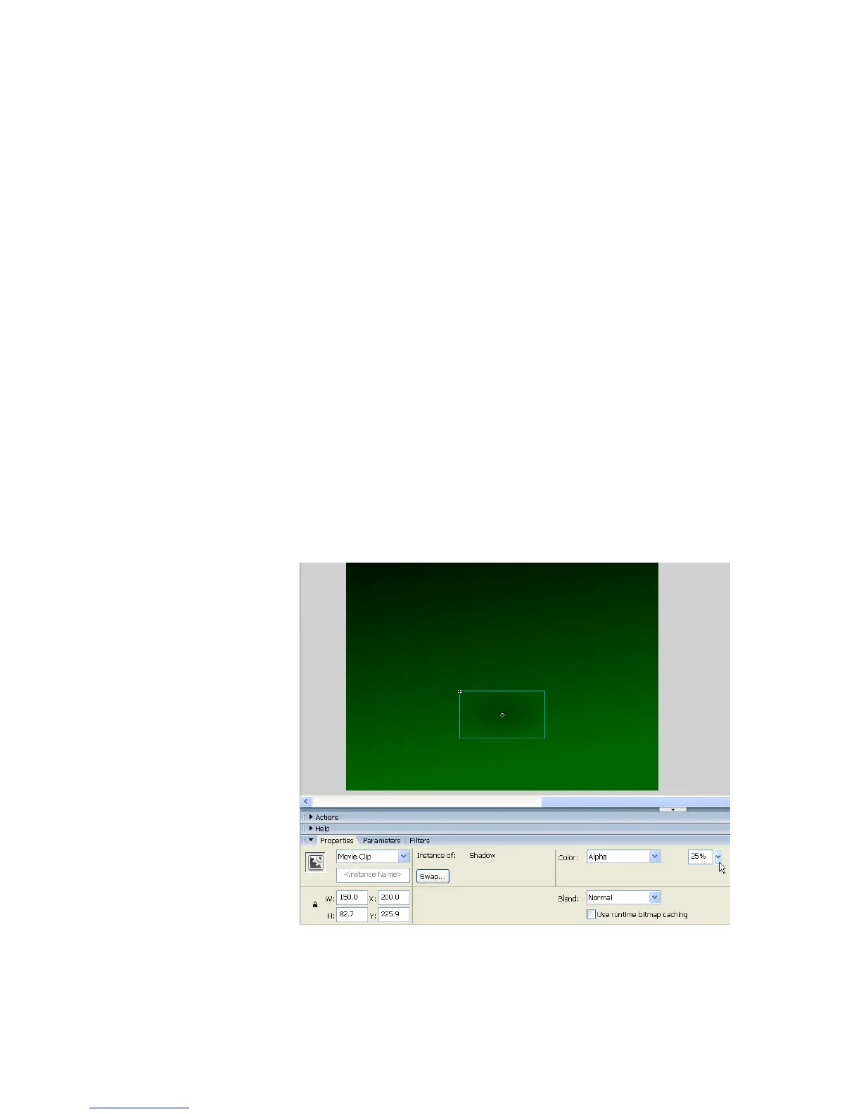 Setting the alpha value of the Shadow movie clip on the Stage to 25%