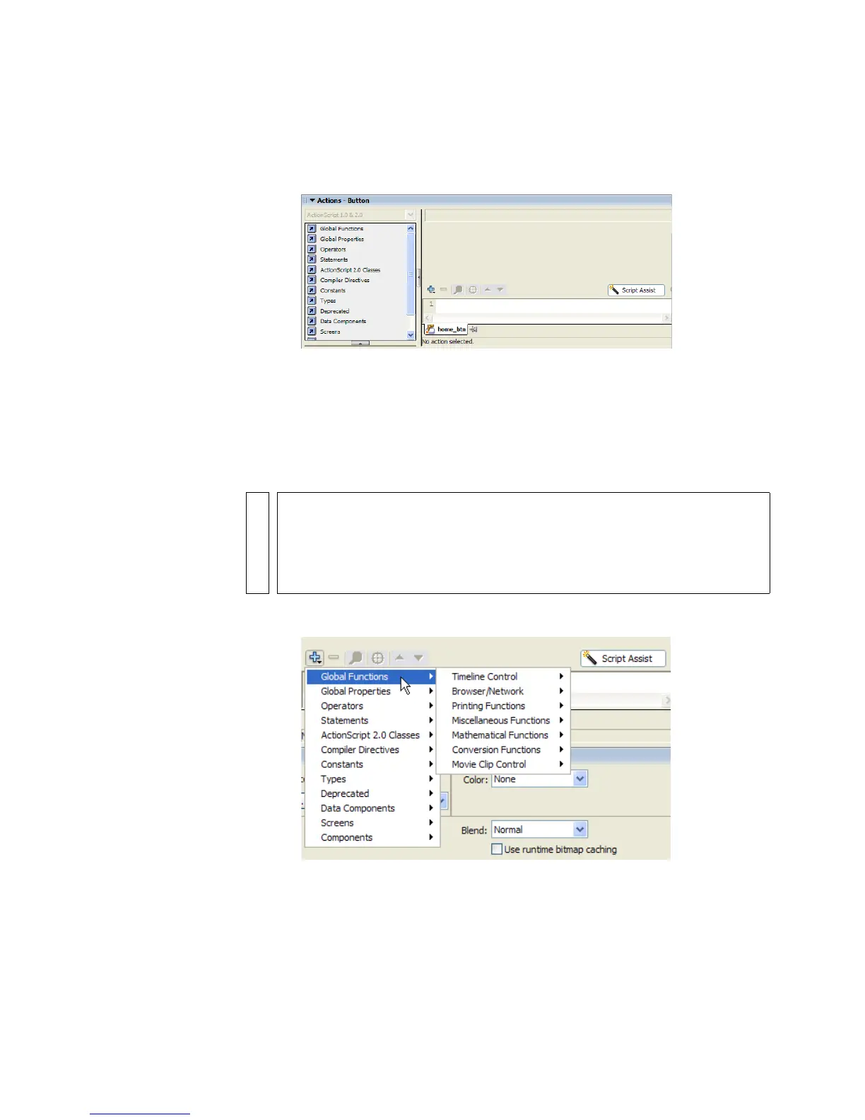 Initially, the Script Assist portion of the Actions panel is blank. Script