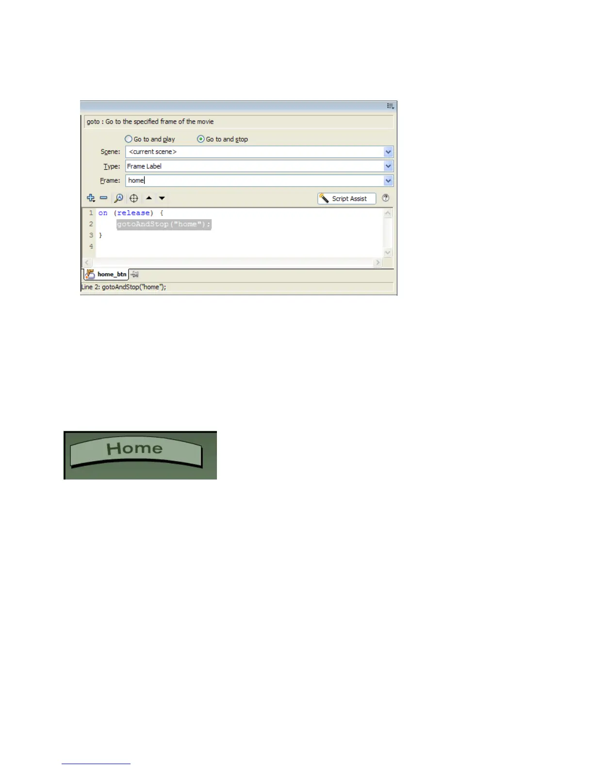 title “Home” in the Title movie clip, indicating that the Home frame is
