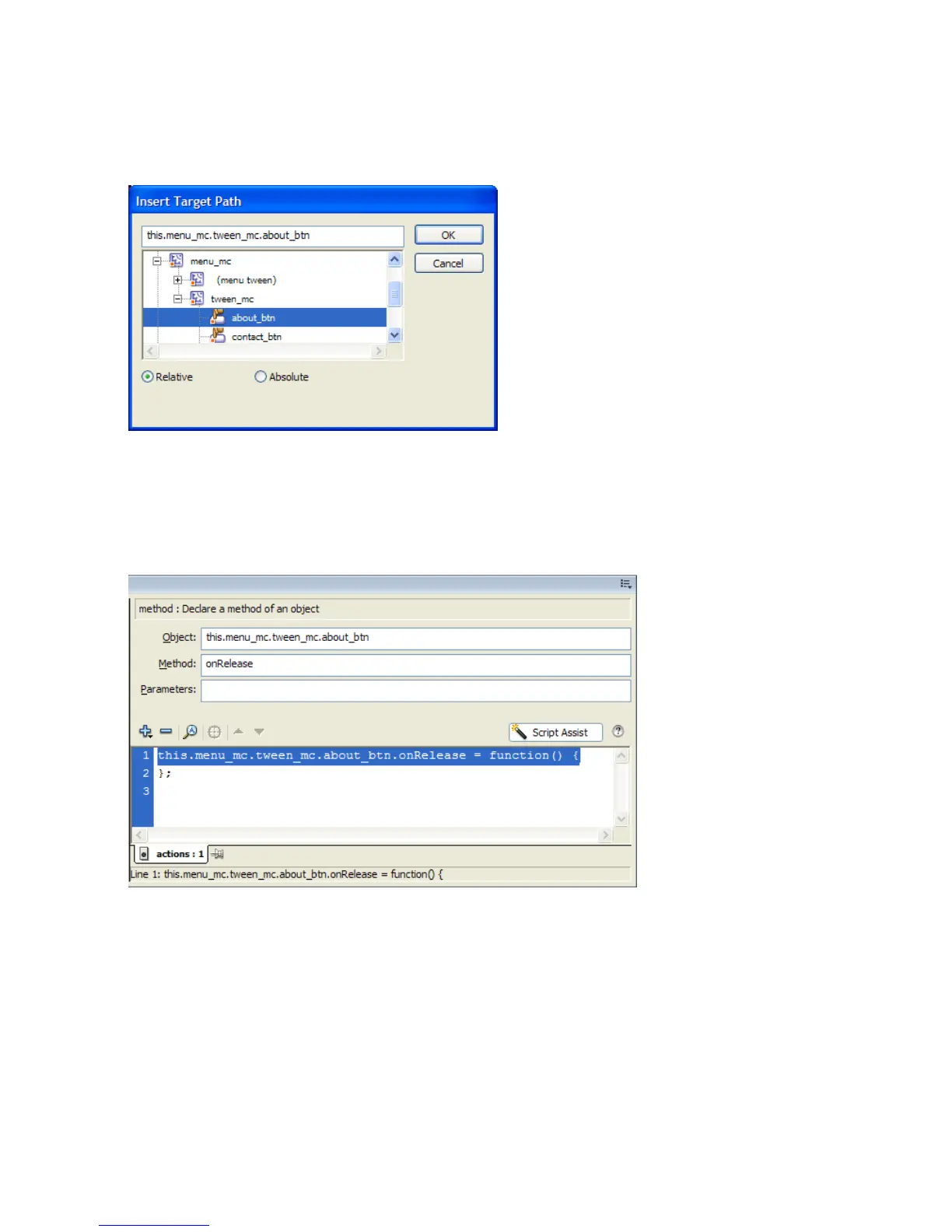 The target object (the Menu tween) is added.