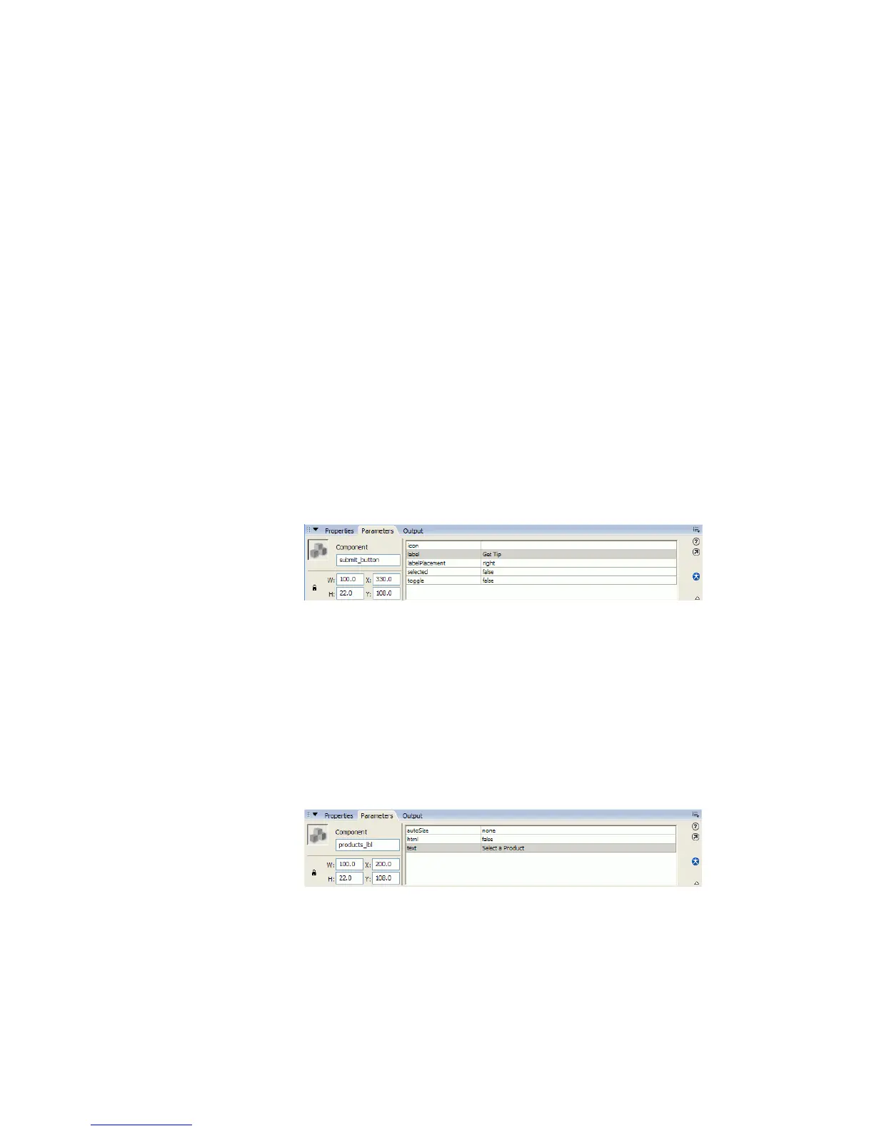 Button component to the Stage. In the Property inspector, enter the