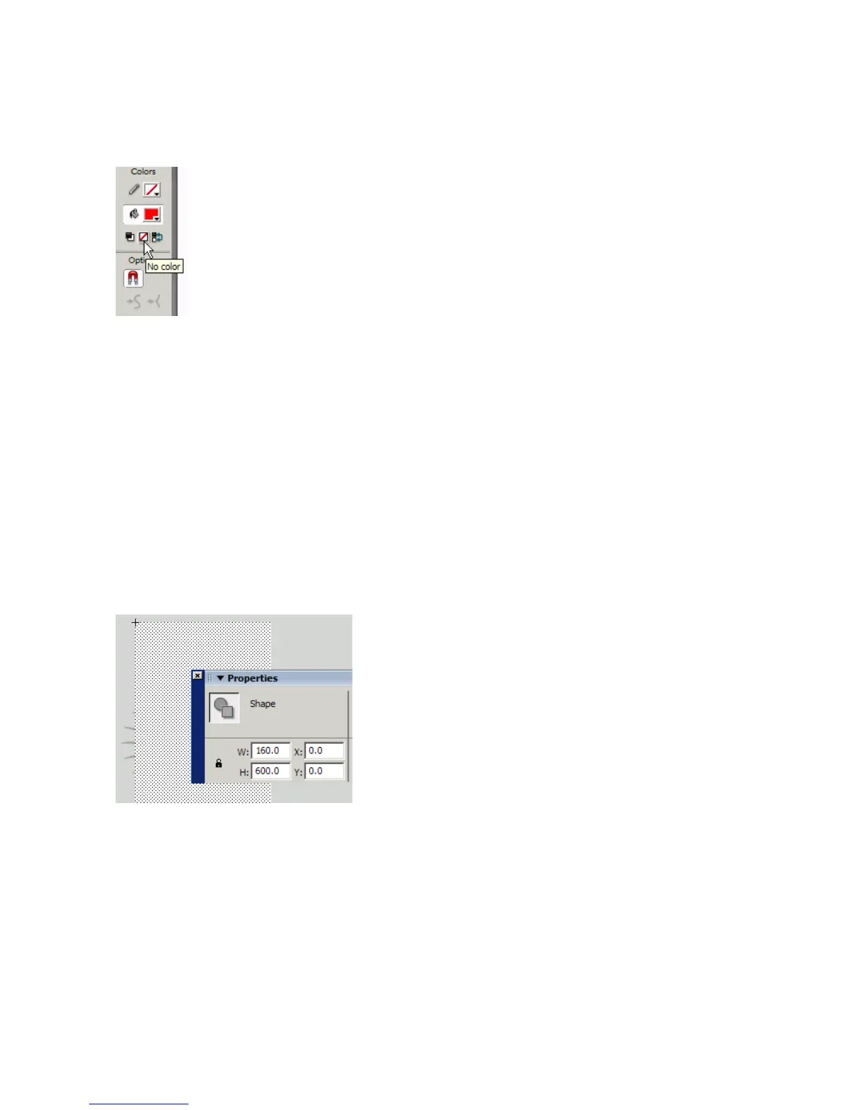 6. Drag the mouse diagonally across the Stage to create a rectangle.