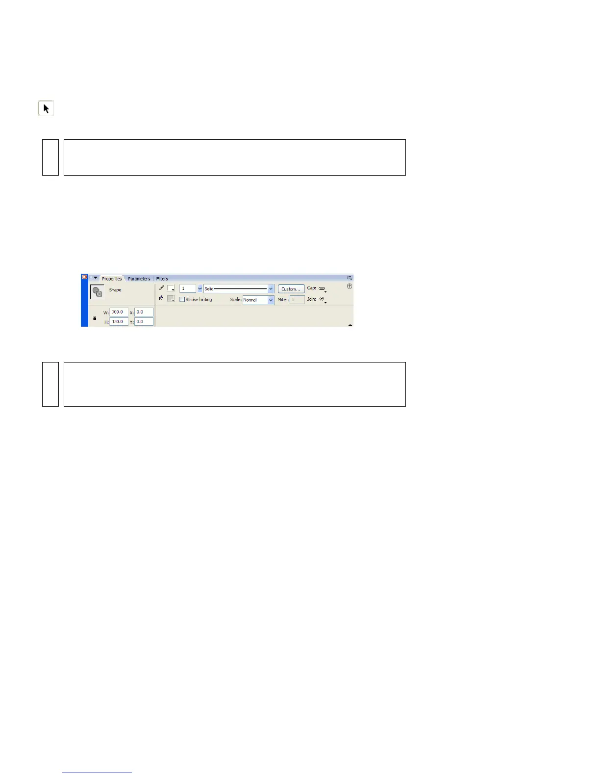 The Property inspector with the correct width, height, X, and Y values