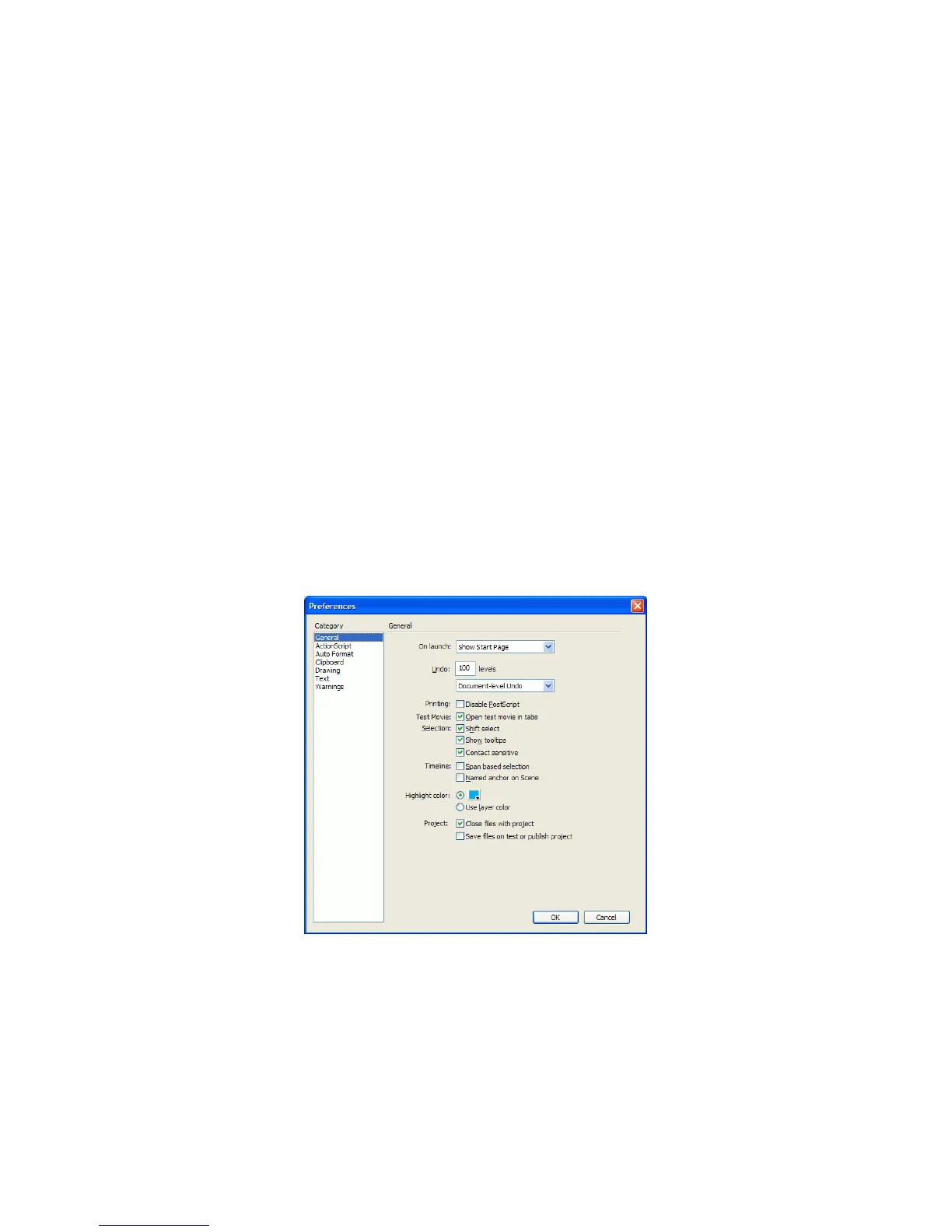 drawing preferences, see “Specifying drawing settings” in Using Flash.