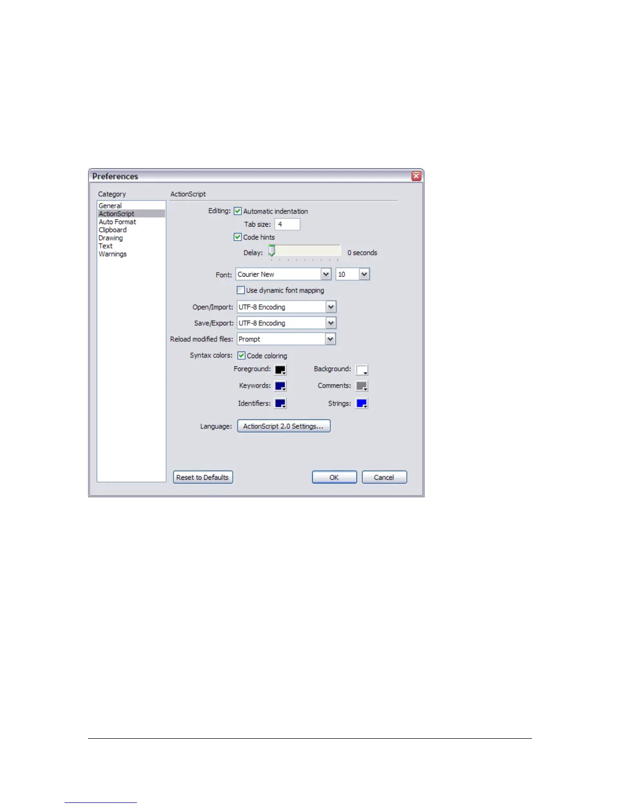 click ActionScript (Windows) or Flash > Preferences and then click ActionScript