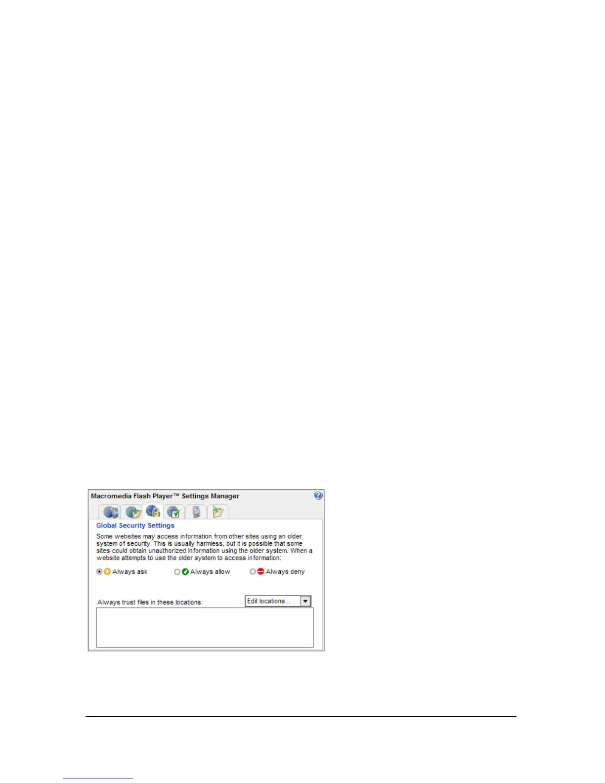 Macromedia has designed Flash Player to provide security settings that do not require you to