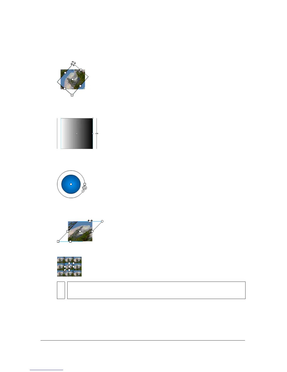 ■ To scale a linear gradient or a fill, drag the square handle at the center of the bounding