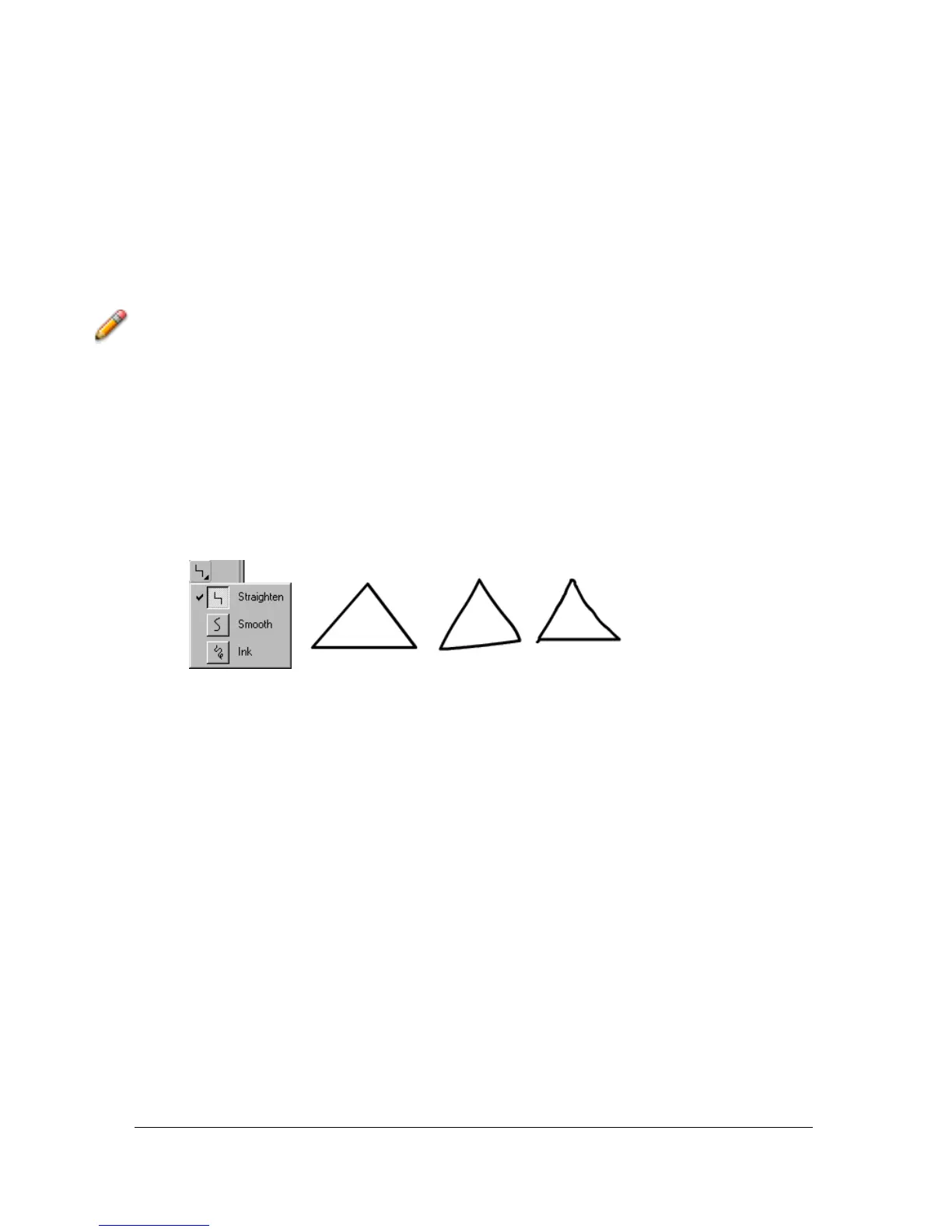 ■ Select Straighten to draw straight lines and convert approximations of triangles, ovals,