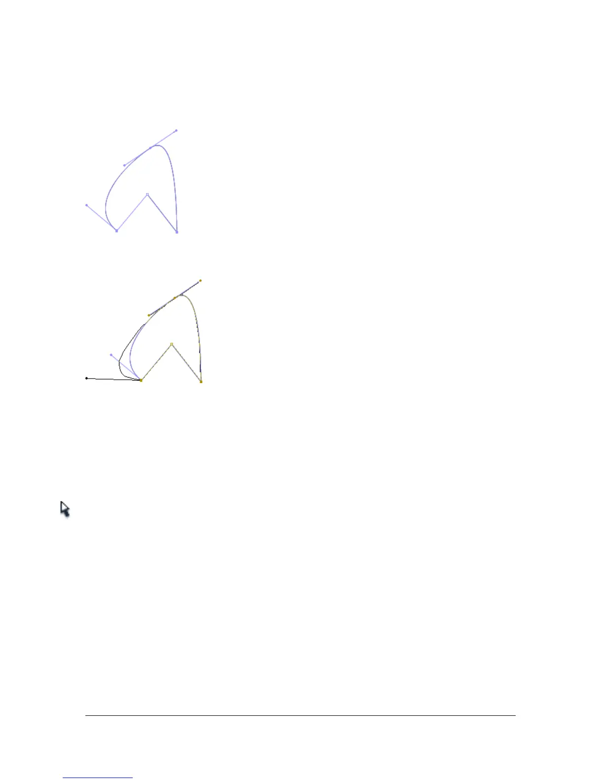 ■ To convert a corner point to a curve point, use the Subselection tool to select the point,