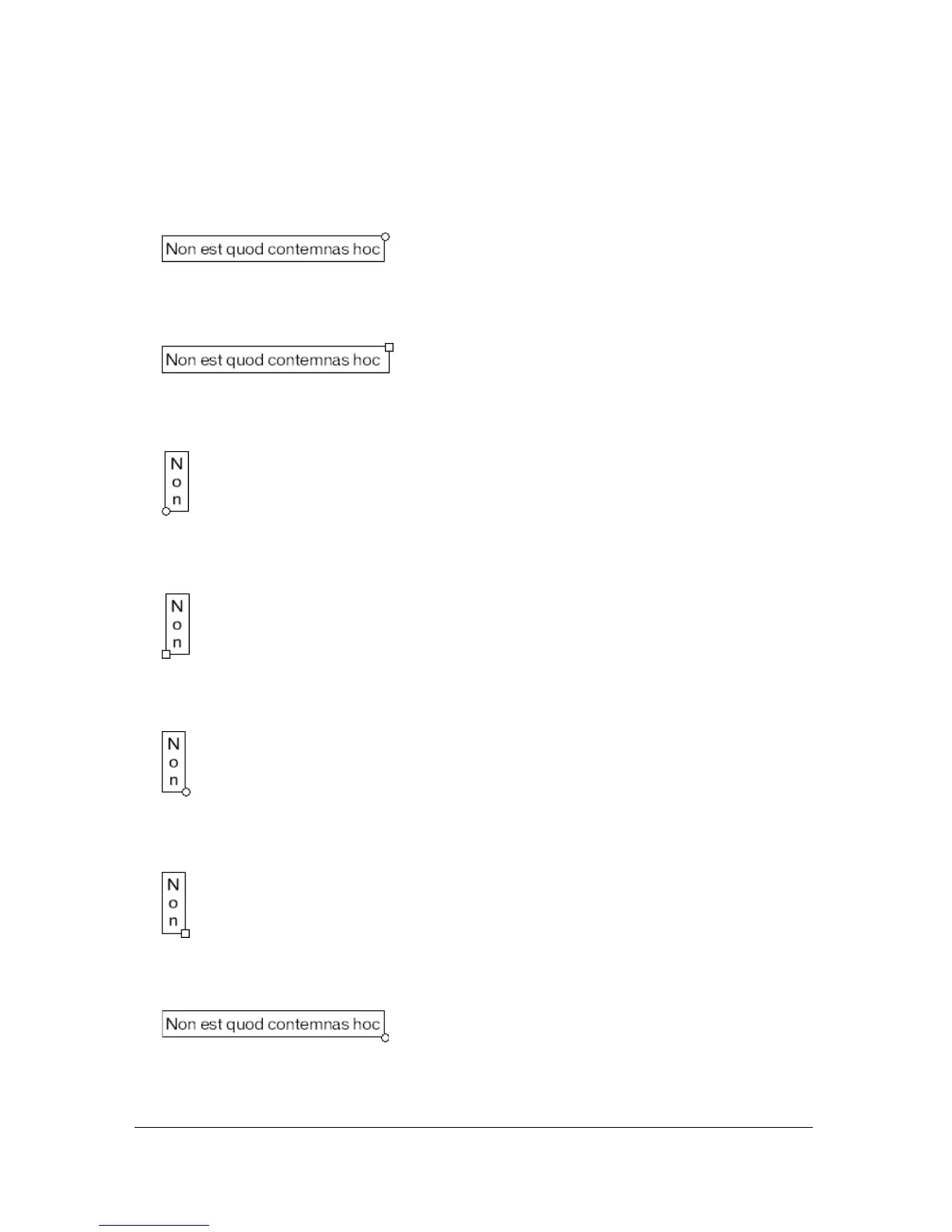■ For static horizontal text that extends, a round handle appears at the upper right corner of